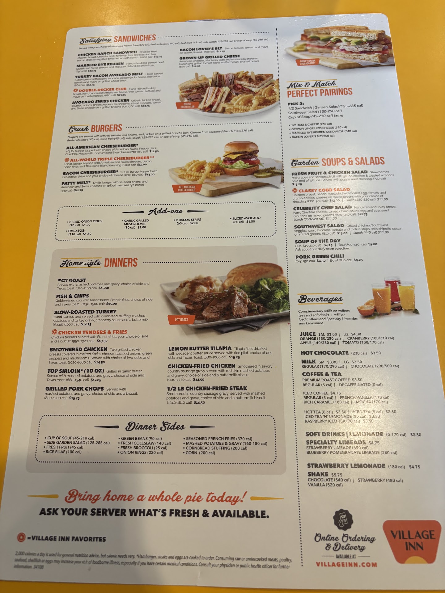 My experience: I ordered the pot roast. The entire plate came out cold, the potatoes had warm gravy but the potatoes themselves were cold, as in fridge cold, not just sat on the counter cold. The pot roast was luke warm as well. The only good thing about my meal was the soup, at least it was slightly better than warm.