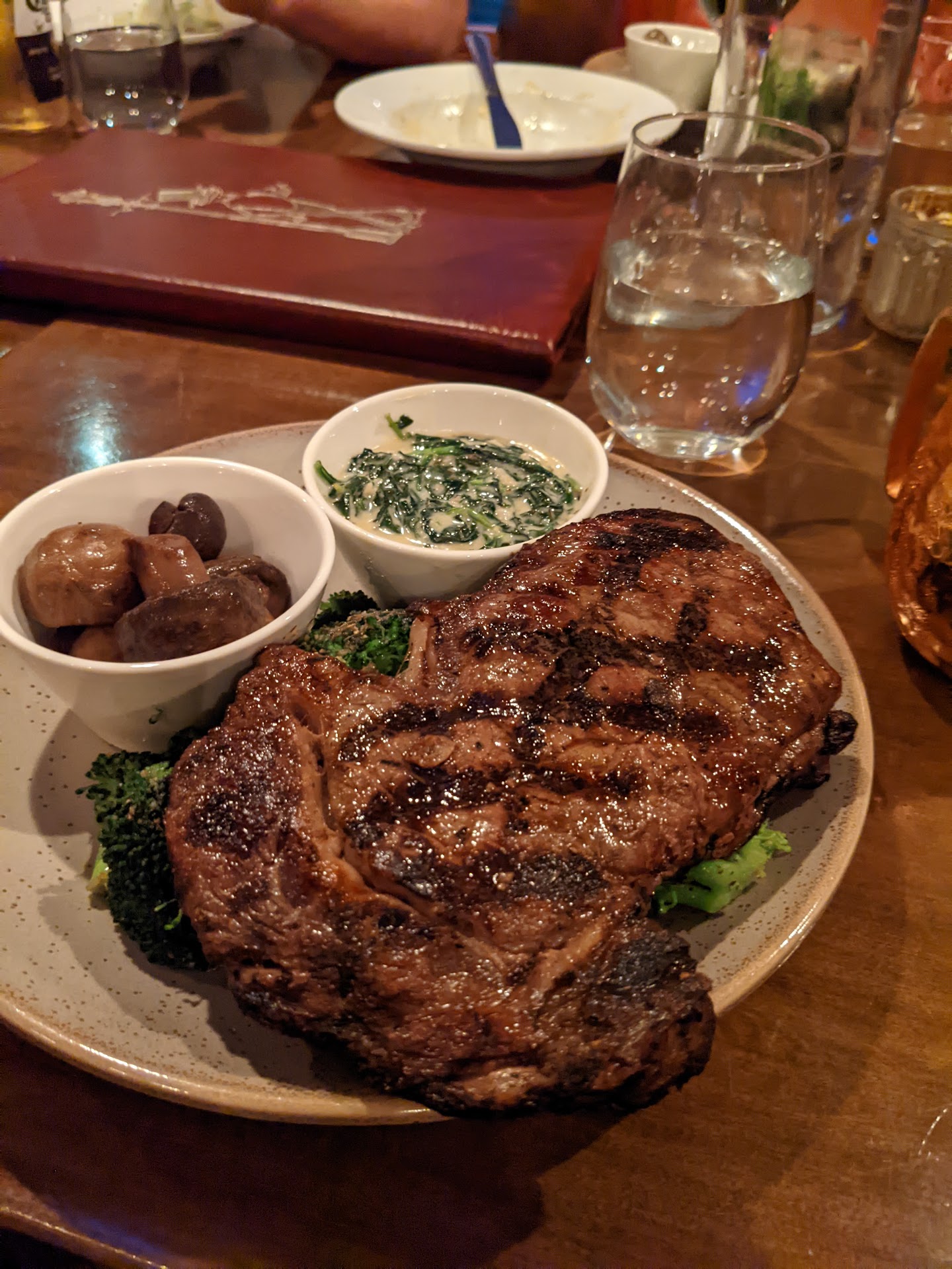 Read morePLEASE READ I am a person that does not leave reviews. My experience at this place could not just be swept under the rug. Fellow diners must know what they are in store for. We were in town for a sporting event. I googled nice restaurants and made a reservation here. I read some of the reviews (good and bad) and figured we would try it. We arrived a tad early for our 8 PM reservation. We were seated right away in the bar as we requested. Our nice young lady server came right over and we placed our drink order. Drinks came right out and then we placed our meal order. We ordered salads, steak entrees and a couple of sides. The salads flew out to us and they were good (816 PM). We both had the caesar salad. We anticipated the entrees being out very soon. Our server came by a few times and checked on us and told us our meals were coming. We were getting antsy around 9 PM. From where we were seated we could see tray after tray going into the dining room. When I asked our server if everything was ok she told us they had a couple of large parties and that the kitchen was a tad backed up. It didn't look that busy to me. I understood and said no problem at all. We continued seeing tray after tray head into the dining room. We saw people at the bar order items and those items come right out in minutes. Granted they were desserts and appetizers, they were still out quick. At this point it's 915 PM. I told my kid that at 930 PM we were leaving if our dinners were not served. At 926 PM our dinners were served. My kid's steak was hot and glistening and looked right off the grill. My steak looked dry and was lukewarm to the touch. They had clearly been cooked at two different times. I am guessing that our order got screwed up and mine was made long before (then sat forever) the rush job on my kids. My kid's baked potato looked great compared to mine that was again cold and looked as if it might have been dropped. Our side of asparagus was also lukewarm. It must have been prepared with my steak and not my kids. I refused my meal due to it looking inedible. It was that bad. They took it off the bill and I still tipped our server as if it was there. It wasn't her fault our experience was horrible. I figured a manager or owner or someone would come over and offer an apology for things not being up to what a consumer would expect when they are paying for a nice meal. No one did. Please use caution when...