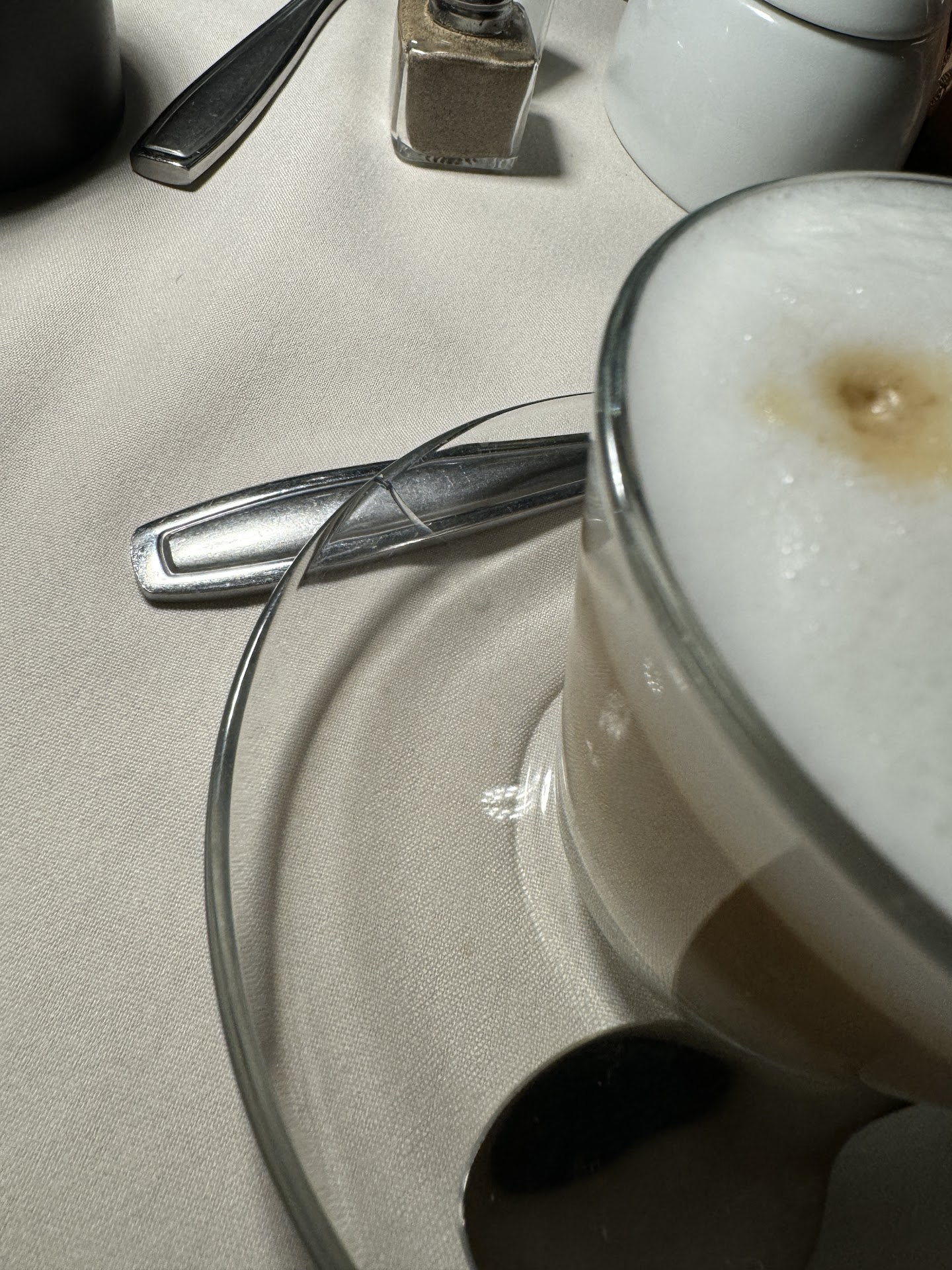 I ordered 2 cappuccinos. They came out in glass cups and saucers. My wife’s was good. However my saucer had a crack in it. In a restaurant like this, presentation should be paramount. I could have gotten over the cracked saucer, but it wasn’t until I ordered my post dinner scotch was when I became disappointed. They washed the glass but didn’t have the decency the dry it out before pouring the single malt 🤦♂️.