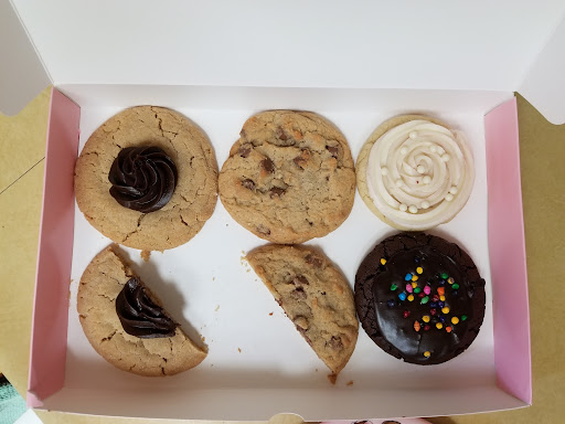 Now the cookies themselves are a delight. Over the top in size and presentation, they are delicious as well as social media friendly. My favorites include: Reese's Pieces Any Sugar cookie offering (with or without frosting) Milk Chocolate Chip