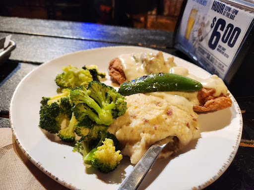 The food was OK but definitely not particularly memorable. We had chicken fried chicken with broccoli. The broccoli was tasty but a little over cooked. The chicken was also a little overdone, which made it kinda dry. That said... it ended up OK because it was covered in a really delicious gravy that made up for the dryness. The mashed potatoes were really good. We also had a half rack of ribs that had good flavor, but again were just a bit overcooked. I enjoyed the meal but probably wouldn't seek it out again just for the food. I would definitely come back for...