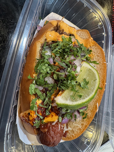 Read moreWas unaware that I sat down and ate at the bar but it was still nice regardless considering Jordyn (mightâve misspelled her name lol my b) was rather still nice and attentive. Got the âhotâ hot dog and quesabirria tacos without the consome. For starters that âhotâ hot dog was so good I was actually blown away. Between the sauces on top to the flavor of the toppings I was actually drowning in flavor for a moment. I actually would 100% recommend that for sure for anybody trying Dirt Dog out for the first time ever. Regarding the quesabirria it was alright. The flavors were there but normally quesabirria is somewhat crispy but it just felt like a light fried taco. I wonât complain too much on it since the meat tasted so good and the sauces were amazing. Made me be a little thankful I chose not to get the consome cause then itâd really be a soggy taco at that point. Overall was still a really good experience and will try more of the hot dogs when...