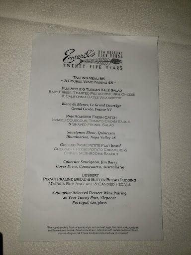 Read moreI was in town to attend a concert on the 25th so I celebrated Thanksgiving alone. I booked a table at Emeril’s at 8pm. Arriving a bit early, I was taken to a nice table adjacent to the glassed-in wine cellar. The restaurant was pretty full but service was efficient and attentive.