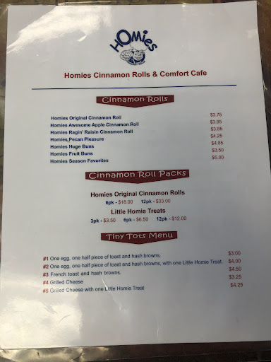 Read moreI've never been so sad. Tried Homie's food around the time he first opened, about 5 years ago. It was him and maybe 1 or 2 other employees. Man treated us with kindness and he gave us a fresh box of 4 rolls. Not only do these rolls blow out the price they were sold for, but I also haven't had a cinnamon roll that good to this day. Even homemade ones; I've tried and I have plenty of experience in baking and cooking, both professionally and as a hobby. There's never been a dough that moist, that flavorful, and that perfect. Not to mention the icing and just how well it coincided with the roll itself. Then you get down to the smear of sugar and cinnamon between the folds of the roll and you have the best cinnamon roll in this part of the valley. I had only been to Homie's twice, once for the rolls and the other time for the breakfast plates, which were almost as good. This spot was tucked away in a shopping outlet, almost clear out of view, and it's a tragedy just how little business it received. Homie's had so much love to give and deserved much more than it received, and I hope it comes back someday. I've never been so heartbroken at seeing a local...