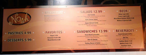12/3/2021 Went to Nosh to get a pastrami sandwich. Unbeknownst to me, the menu has completely changed. A lot of items that were on there are no longer on there, including the pastrami sandwich. I ended up getting the roast beef and cheddar brioche for $13.99. It was very good. My girlfriend got the chef salad and it was fresh and good and $13.00. I am going to upload a photo of the new menu. It is a fraction of what they used to offer but I can contribute all this to covid. Also I'm not blaming them for the menu on here being incorrect as those are customer uploaded. The staff was friendly and I had no problems with it other than I couldn't order what I really came here to get and the prices are higher but again, they were old photos and...