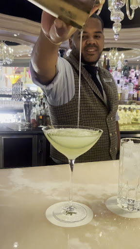 Robert D made me my favorite drink of the day a gin cucumber 🥒 martini that is my favorite drink of the day! I absolutely believe you should have him make you one. I was waiting to go to the show awakening by Cirque du Soleil. He was not only friendly, helpful, but what a fabulous suggestion. Absolutely fantastic. The atmosphere is good. They also sell cigars it is considered a cigar lounge. It’s very accessible. Decor is good it’s not too loud. And the staff is so friendly. Very clean very comfortable and enjoyable.