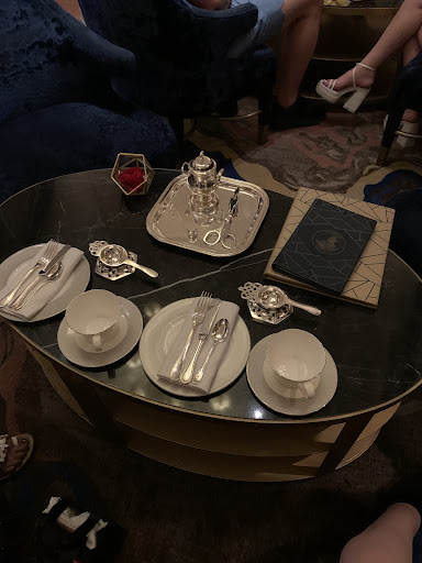 The hostess was friendly, but our server, a middle-aged woman with dark hair, seemed pretty uninterested in us. I thought for sure she'd come around and offer us drinks during our tea, like a cocktail, since bars want to sell alcohol, but she only checked on us once the whole time. She didn't seem particularly friendly or happy to be there.