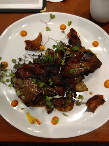 I digress... This IS affordable fine dining fare. I cannot say that enough. I had "The Glutton"; a melange of pork over baby potatoes, covered in a sauce that was an inducement to plate-licking. Pork belly, candied spicy bacon, and regular smoked bacon merged as individual tastes and had me making sounds which should be saved for the privacy of one's own home.