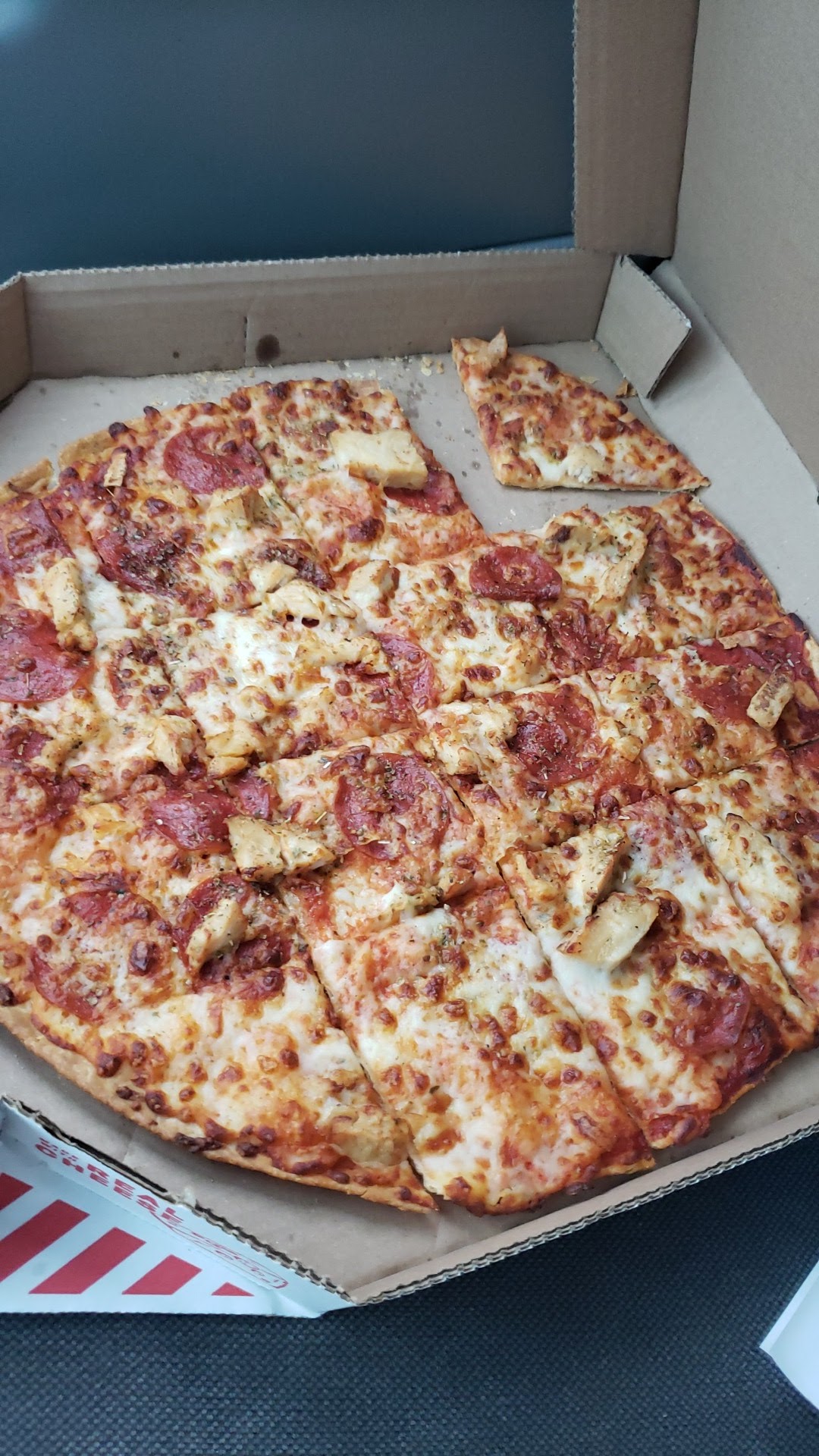 Read moreIll admit i was being lazy and didnt want to walk or drive to the store so i ordered it for delivery. I got a message at 8:51 that my pizza left the store. Now i ordered way earlier but i dont care about that it was Game 3 of the playoffs i get it they are busy. I called at 9 and said "hey i can see the store from my house i cant imagine it takes ten minutes to get there. She tells me that sometimes it does it earlier the driver was putting it in the bag now. Fast forward to 9:23pm the driver still isnt there. (see picture) and he shows up a couple minutes later. Driver was nice and i dont blame him but my pizza was cold by the time i got it and i had ordered almost an hour ago. Its a 5 minute walk why did it take over 30 minutes to deliver my pizza. Wont order from there again. There are 17 other pizza places within a couple miles.