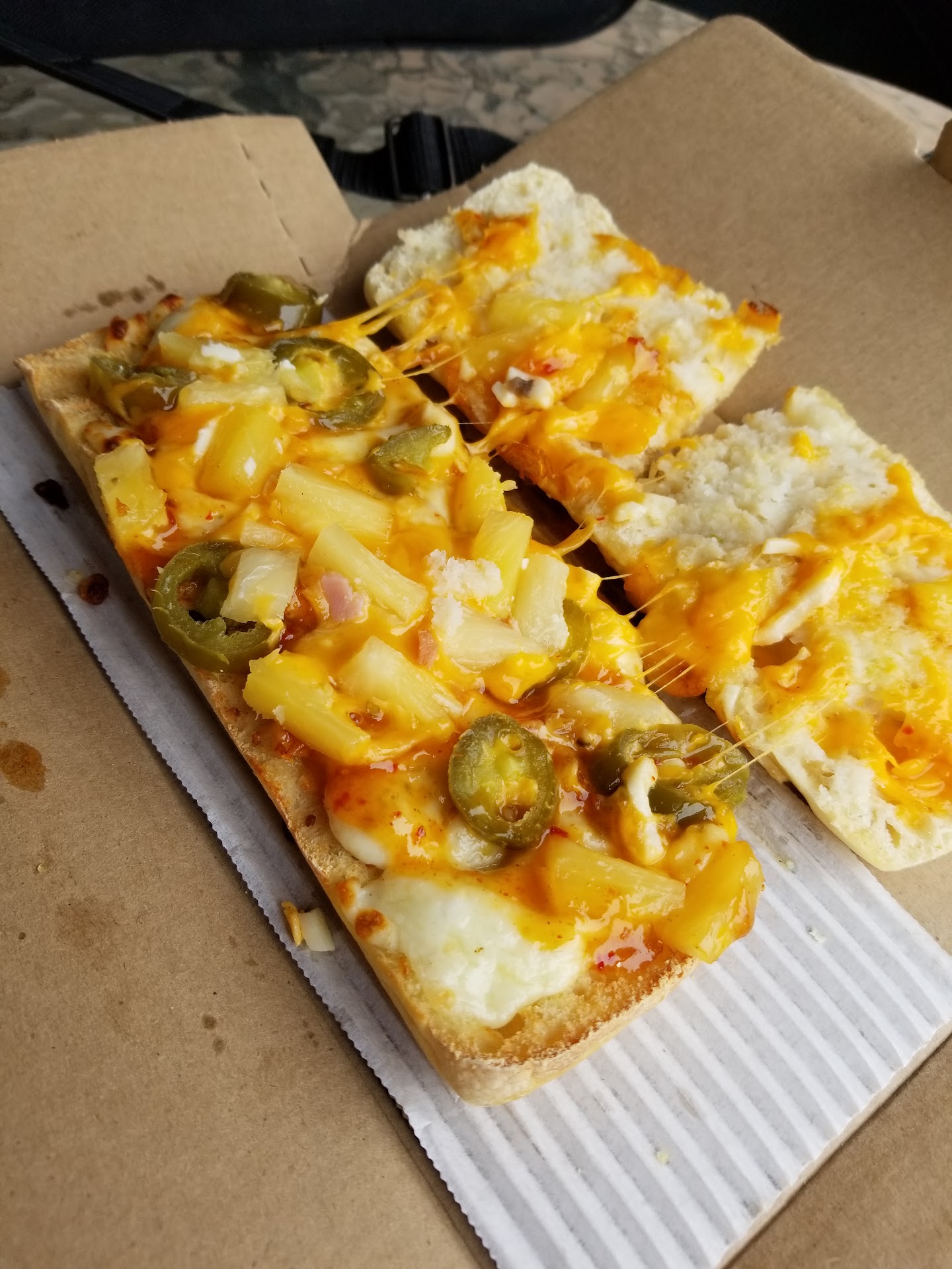 Delivery was pretty fast (Note: I ordered around 4 pm on a Saturday.). The delivery person was a nice lady, my first pizza delivery person who wasn't a guy, which is kinda cool.