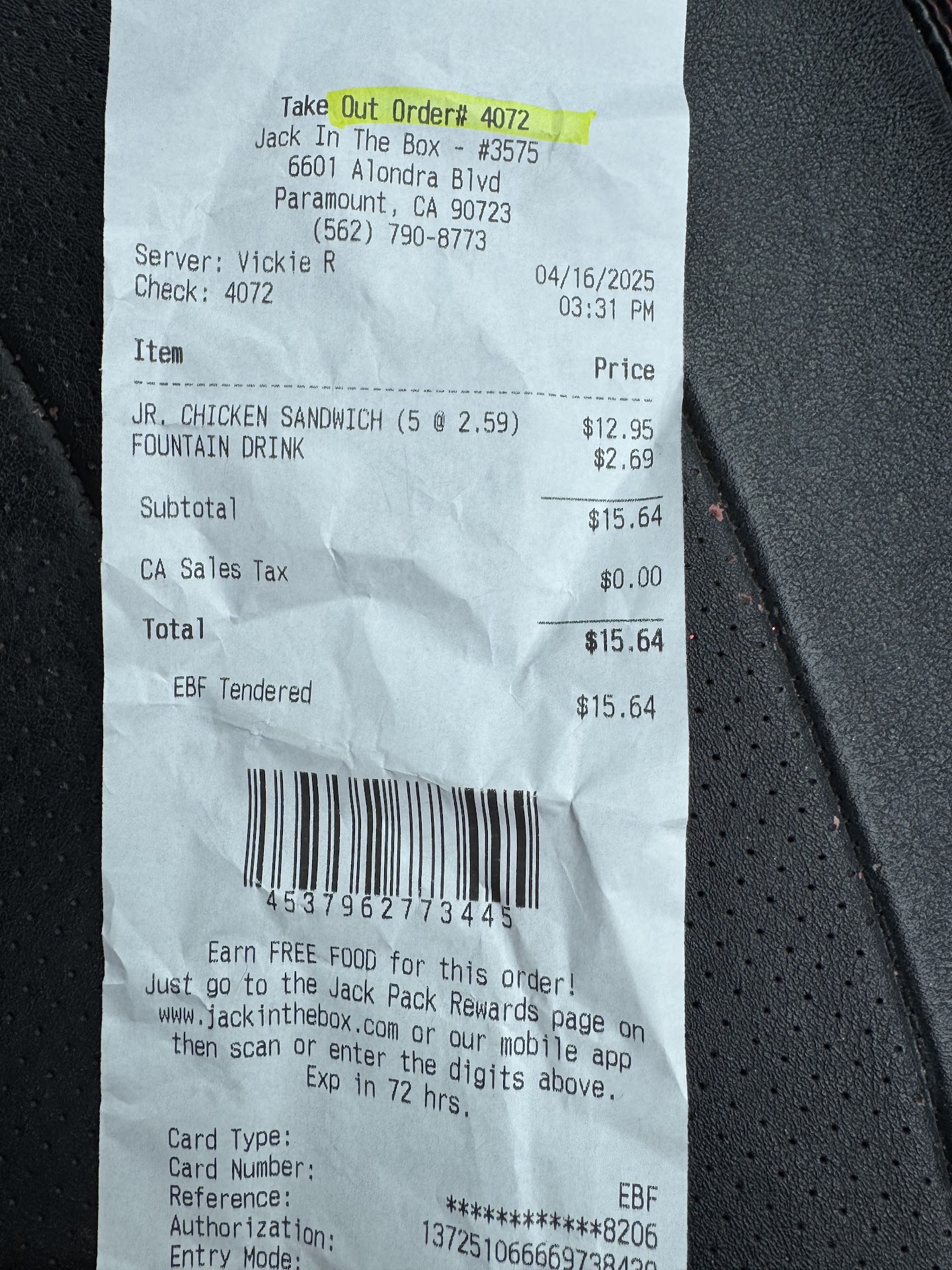 Read moreI was on my way home the other day and went through the drive thru, at the speaker, the lady taking my order sounded so professional and friendly. At the window when I paid for my food, Claudia re-read my order when I realized it was her voice through the speaker. When I complimented her voice, she thanked me while handing me my food, and let me know what was in what bag while warning me that the bottom of the bag might be hot and asked if there was anything else she could get me. I never had such great customer service here before. The food never tasted better either, the curly fries were hot and fresh and the Jumbo Jack was great too. 10/10 will...