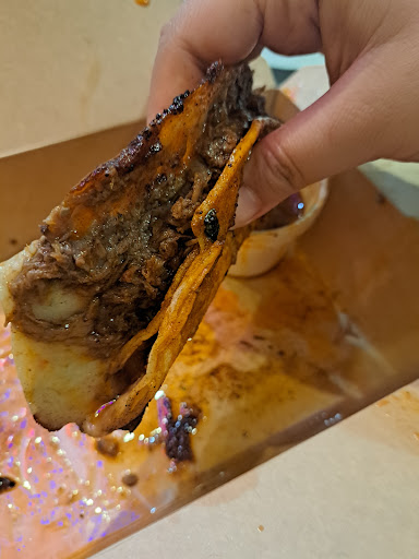 AS A HISPANIC YOU KNOW I'VE EATEN MANY TACOS BUT THESE QUESO BIRRIA TACOS WERE LITERALLY HEAVENLY!! I ordered 3 queso birria tacos (2 are in the photo because I ate the first one without a beat) and I did not ask for consome (usually in taco spots you have to ask) and they gave me one that was the perfect size! My family also ordered tacos, and they loved the sauces and tacos so much! The sauces had just the right amount of spice in them. MEAT, GOOD. Tacos & Birria Tacos, crunchy and soaked and amazing. Cheese, GREAT and stretchy. 10/10 would...