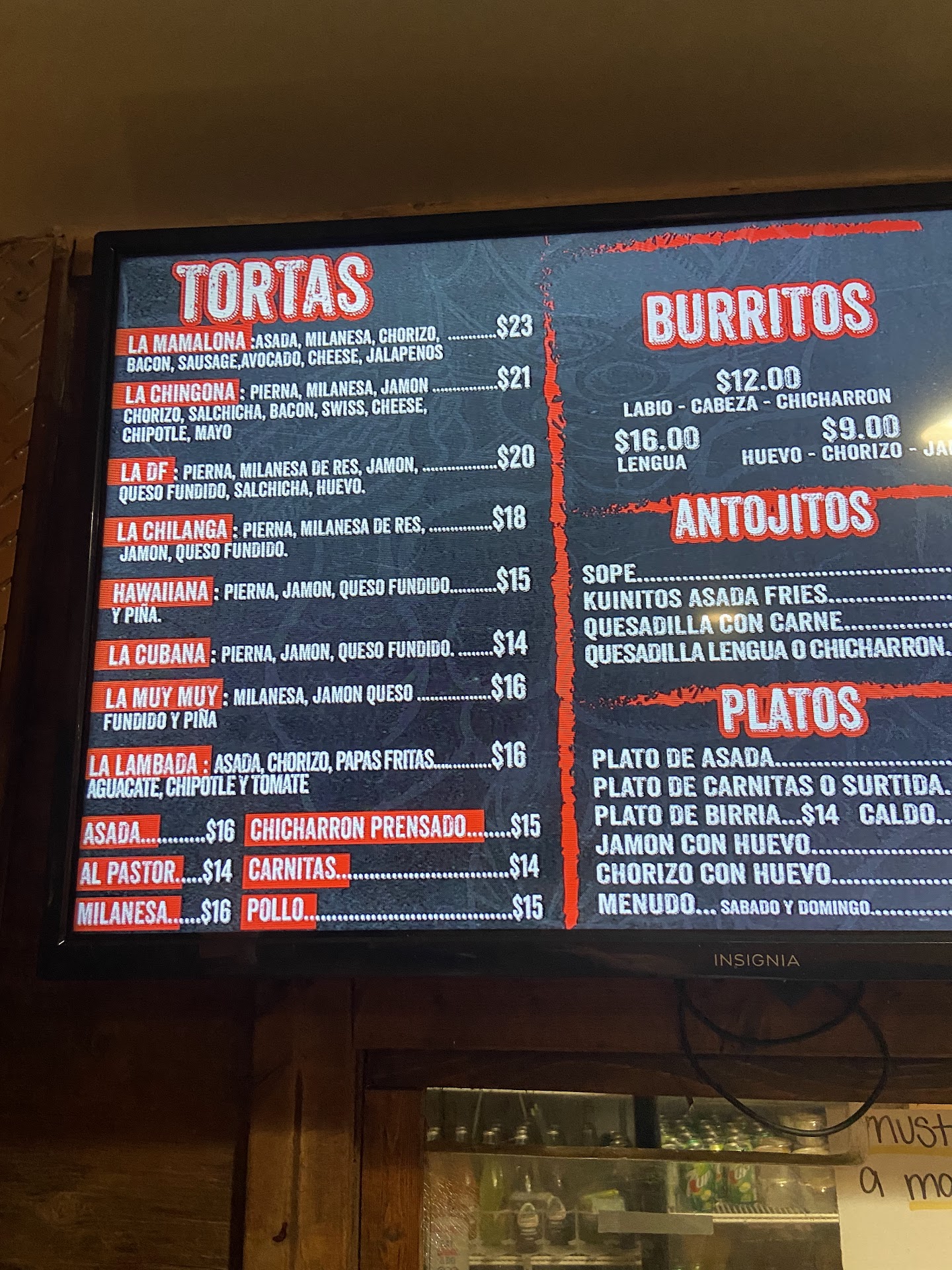 Read moreThe place is medium sized with limited parking, Must try on a night that it is not packed down. It is shared with a money cashing place. Also no parking in the boost mobile parking lot... The torta we demolished was "La chingona". I must say it is "Enormous";). Two people can share and not finish. It is to big to bite all at once but it was neatly stacked with all the meats and veggies( You are asked if you want everything which is lettuce, tomato, jalapenos in vinagre etc. The taste is overwhelming with flavor, also theirs a salsa bar but it was not needed. If you do not like to get your hands dirty like some women you can take a metal/ silver knife and fork the plastic will not do. Also their is a lovely flat screen menu that showcases all the Tortas and what is included, as well as drinks. (OH! the horchata is authentic.) It is kinda small for a big newborn stroller. The staff is Friendly, Fun, and Fantastic. Will definitely go back to try...