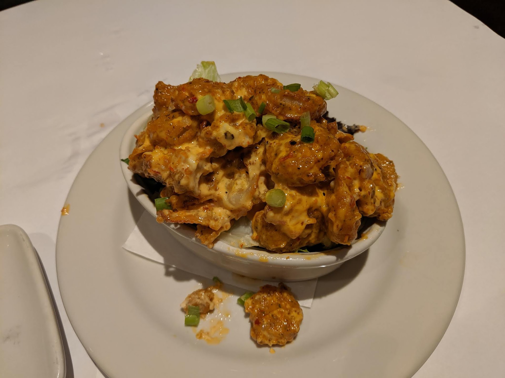 The food was incredible. Better than I could ever expect. We ordered the Thai Coconut Shrimp for appetizer which was amazing. Coated with coconut and a nice crunchy breading and glazed with a more sweet than spicy sauce. Fresh jumbo shrimp. Absolutely delicious! For my entree I had the 6 oz Anglers Sirloin Steak with Au Gratin Potatoes and Seasonal Vegetables. The steak was made to order and very juicy, even though I like my steak well done. The au gratin potatoes were cheesy but not overly salty. I'm not a fan of zucchini so I didn't try the vegetables but they looked great with the grated Parmesan cheese on top. My guests said they were very good.
