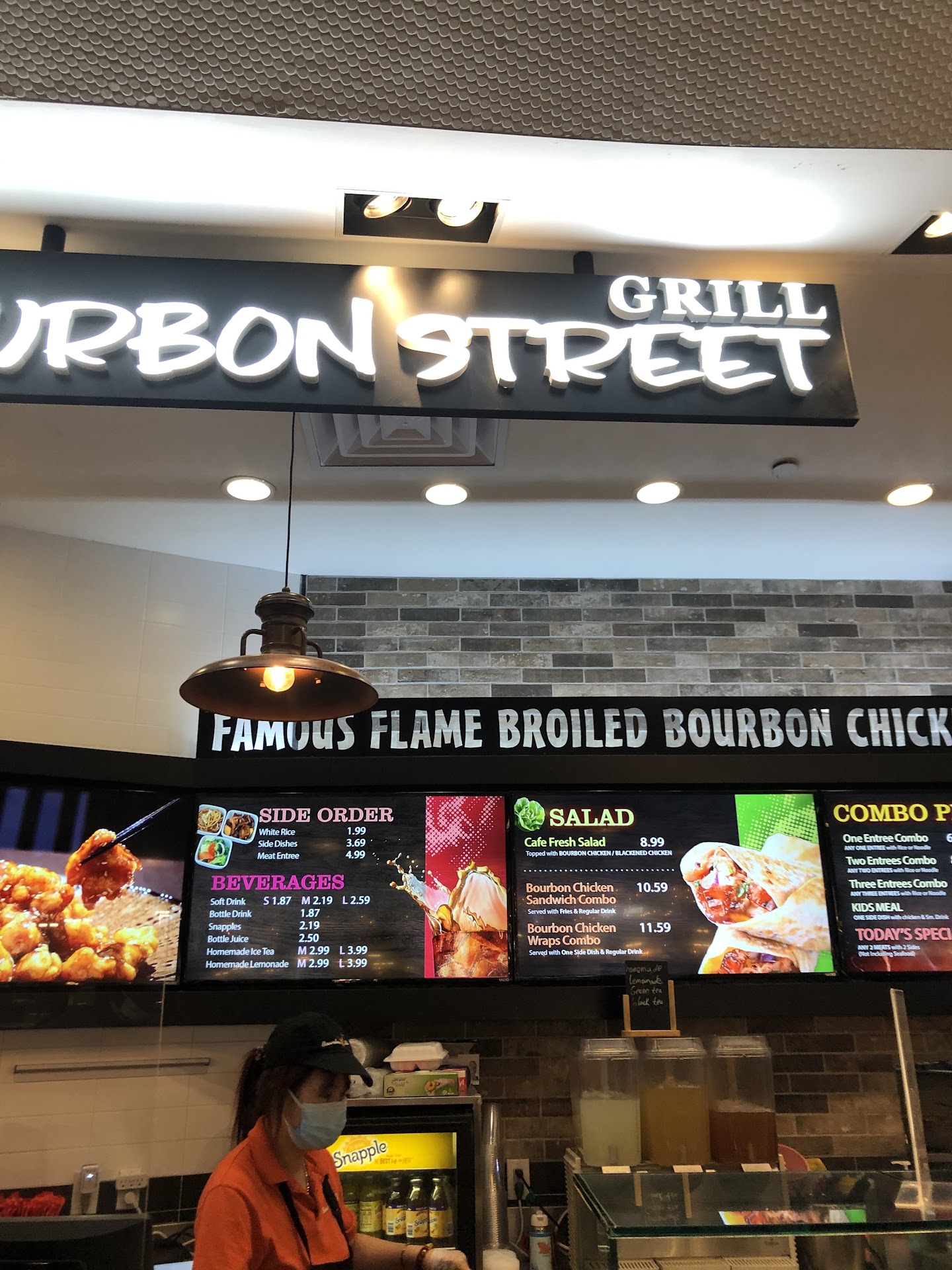 If I could give it ZERO STARS I would. Appalling treatment by an employee. Unfortunately, I did not see his name, but he is a middle aged man of Asian looking decent. I had gotten a meal to go from another food stand, and halfway out of the food court, realized I didn't have a napkin. I placed my bags down on a table and went to the nearest food stand, which was the Bourbon St. Grill. As I walked toward the stand, the man offered me a piece of chicken on a tooth pick. I took it and thanked him, and then proceeded to ask, "I was wondering if you have a napkin?" He, very nastily showed me the dirty rag he was holding and said, "you can have this!" Or, you can have chicken, rice, beans, etc. The girl standing next to him (employee) started to laugh out loud, because she thought his nasty response was funny. I stood there silently and waited a minute. He then saw I was still there and again, very nastily said, "you can have chicken, rice, beans etc.!" The young girl (employee) continued to laugh out loud as I walked away. I have called the mall management and will proceed with...