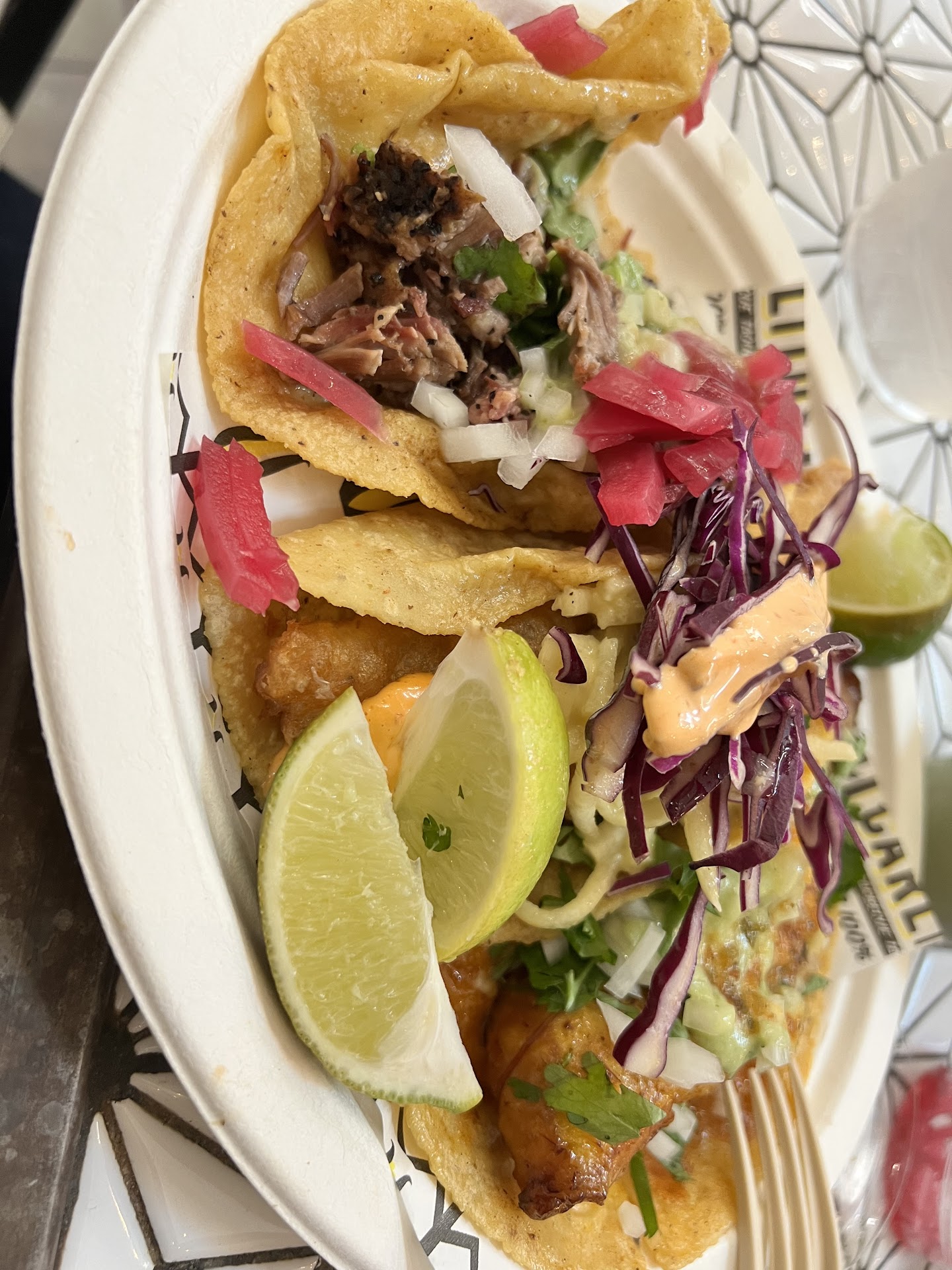And they were. Not only that, the meats inside them were incredible. We tried the birria, carne asada, crispy fish, and smoked chicken, all of which were conversation-silencing delicious. I'm also not a bit embarrassed to admit I sipped straight from the small cup of that rich consommé that's meant as a dipping broth for the birria tacos. If I had to pick a least favorite from the bunch, it would be the smoked chicken, but that's not to say they were bad; the other ones just blew me away far more. The chicken tacos were packed with tender meat and redolent of smoked wood, a flavor I wouldn't have expected to encounter in the middle of a shopping mall.