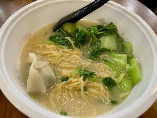 I decided on the Pork and Shrimp Wonton Noodle soup (Hong Kong style). The meal was packaged for takeout, where the noodles were separated from the broth, bok choy, and wontons.