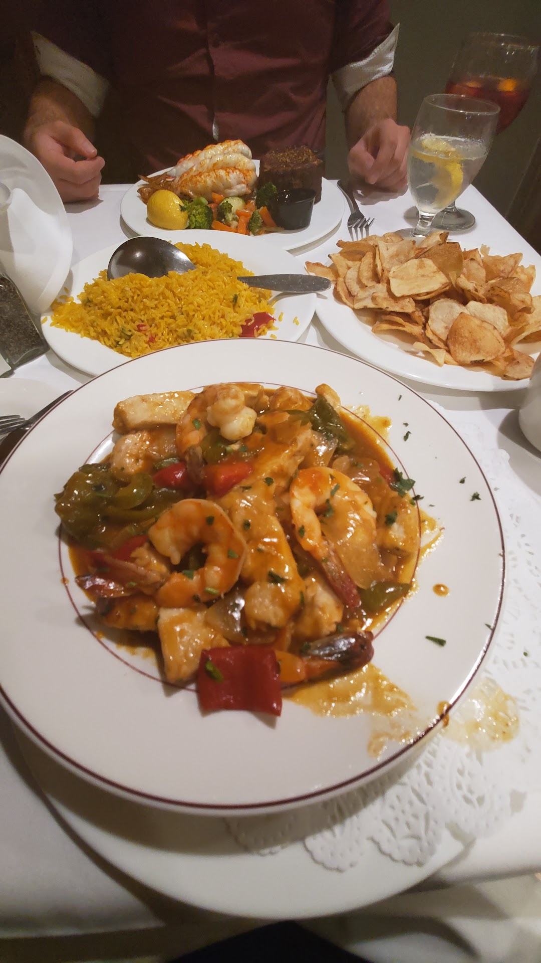 We ordered several dishes, including our usual favoriteâthe spicy tipsâlisted under the appetizer section, as always. Our wives split the Chilean sea bass with yellow rice, and we added a few other appetizers. Most of them were underwhelming and bland, with the exception of the stuffed scallops, which were excellent.