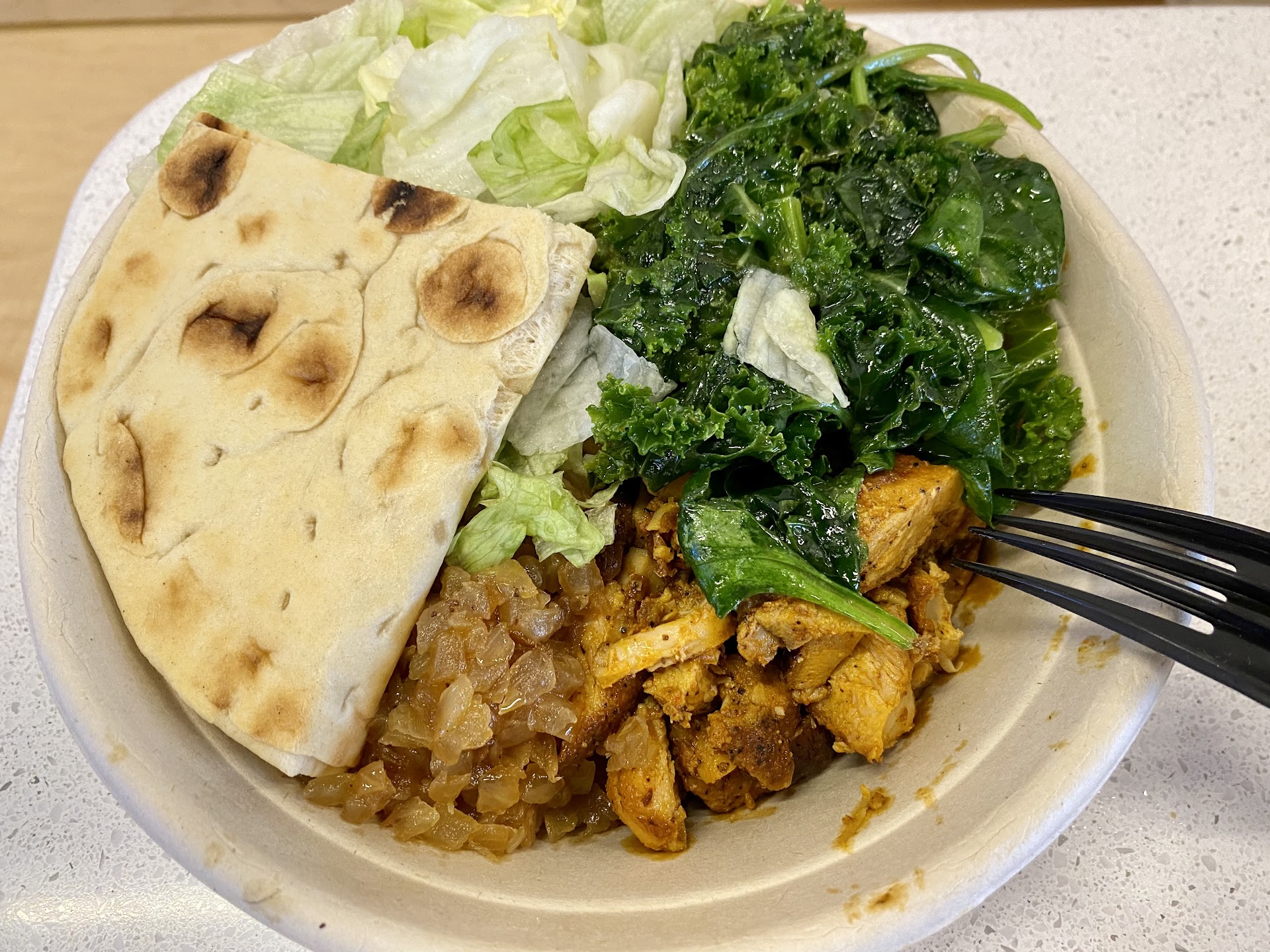 I had this a few weeks back and totally forgot to review. But you're in luck because I was hangry today, and Juicy came to the rescue. Small Mediterranean chain (I believe there's about 4), but nonetheless, this location is great. Service is always great and food is good. One day, I will do a review on food that's not take-out....today is not the day. I ordered ahead and picked up. The fries- pipping hot (sooo good) and a lot of them! Also had the chicken pita and Falafel pita (pics included). The pita on both was a tad wet (soggy), but still good. The Falafel pita I had when I got home. I replaced the iceberg with some romaine, and it was delicioso....(not because of the romaine) the sandwich is good (periodt). Now I will say that the only uhmmm confusion I had was I ordered pita with hummus and the hummus looks/tastes sooo creamy and delish while... they rolled up this one lonely thin piece of pita bread in foil... I thought I was getting pita chips or at least a healthier looking pita bread. Oh well. Either way I'd recommend eating here. They have a selection of Pitas, Wraps, Salads (Gyro, Mix, Chicken, Falafel), Fries, they even have wings (haven't tried). They also have dessert, but I didn't come for that, and I have no idea what on the...