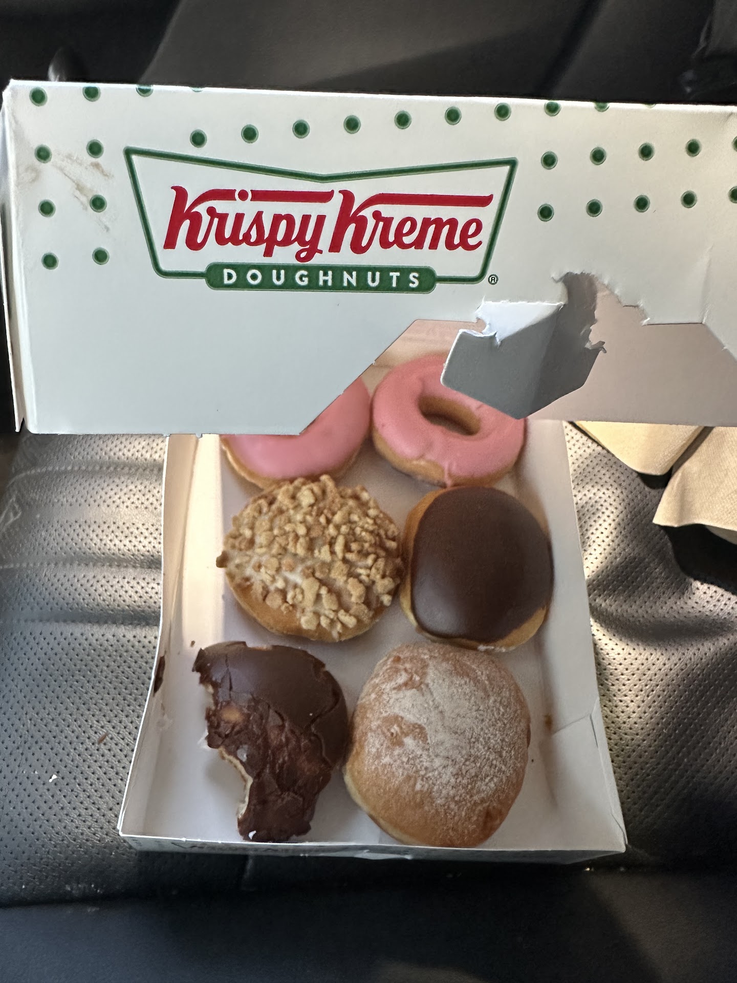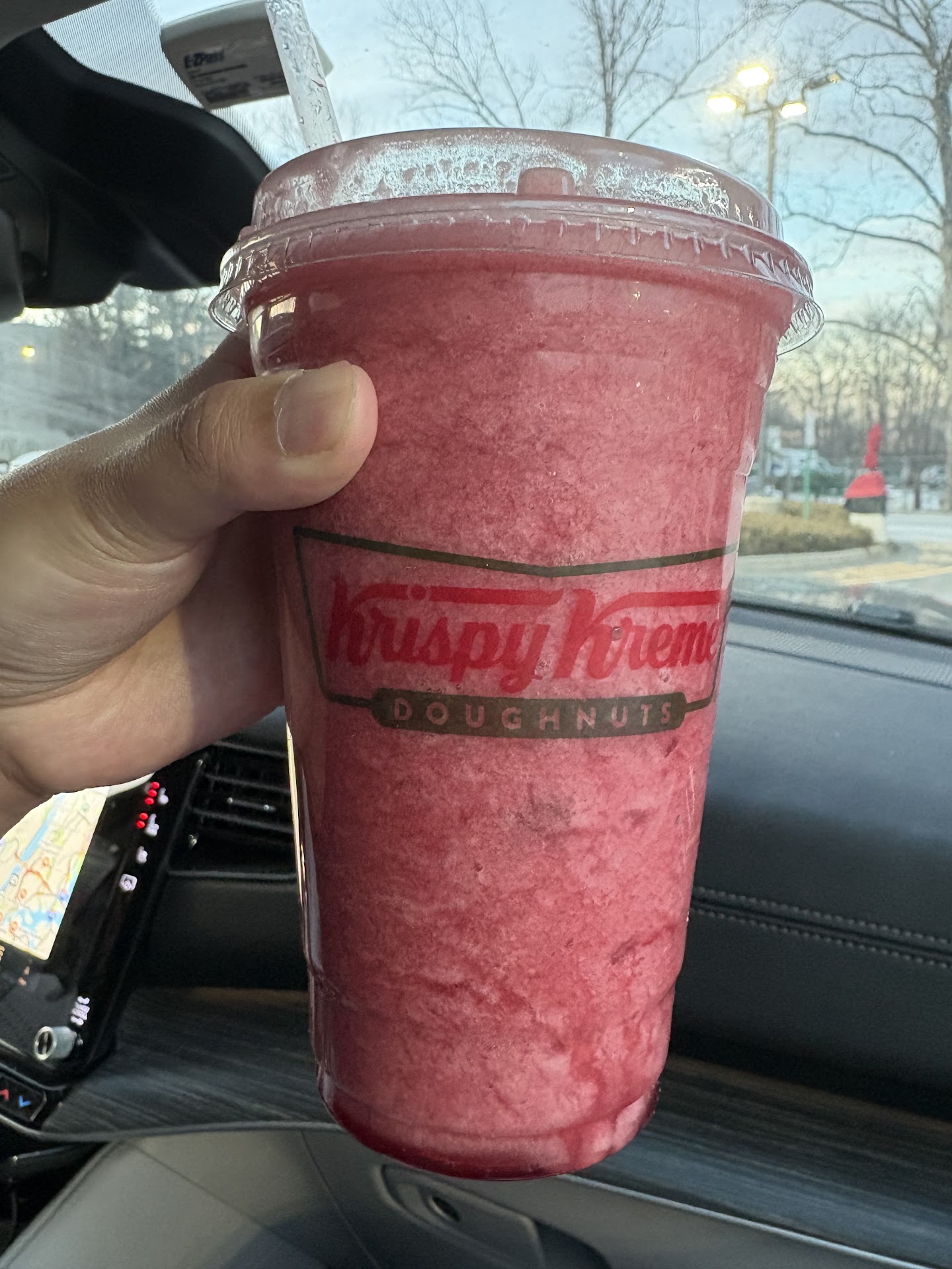 Read moreWe went inside for a regular “Hotlight Hours” but this krispy creme doesn’t have it, unfortunately so that’s a bummer ( we are from Michigan) BUT my main issue isn’t that. My issue was the quality of food and drink. From the photos I’ve shown, the quality wasn’t as up to its expectations from other locations nor did it look normal then usual. The drink was already separating when we got it, it had the sweet flavour which we had loved but there was a big sour aftertaste. Which led me to perhaps gotten sick or the donuts we got from here (10mins after eating it). The donuts were just horrible, I’m very sorry but that is just my experience. We got half a dozen of classic glaze ( the best ones) and were so excited for them, unfortunately it wasn’t as expected. It wasn’t fully glazed all around and tasted just alittle funny. I’m not even complaining about how cold they were but how this batch was made. I’m not sure if they added something or not but I was just not feeling well overall after eating the donut and drink ( overall just threw it all out after the second bite. We just wanted to make sure it wasn’t us but the donut).