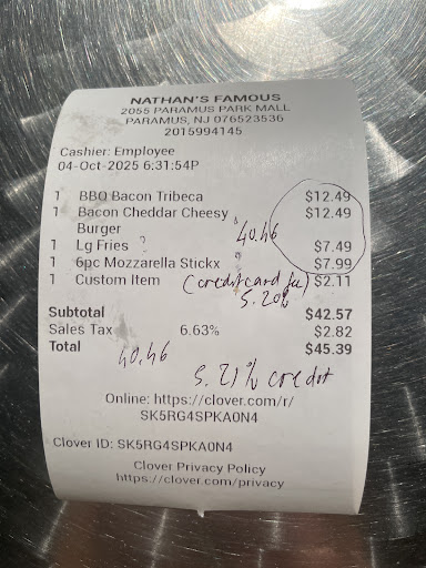 Read moreCan I give this place no stars?!?! You see, I used to work as a skating guard at Coney Island skating rink. That’s last century, when Nathan’s was a local chain. It’s a long time from there, but as you can imagine the taste of fries I remember… well I saw these on someone else’s table and said I’ll get a large order… it’s not large and the price was eye watering $8.41. That’s for less than a handful of fries. Soggy undercooked fries. When I questioned pricing the employee got very dismissive and literally walked away from me, as if he had heard that before. Guess that explains why there is one employee behind the counter and I was the only customer. Save your money. You’ll get more fries at five guys and they are better.