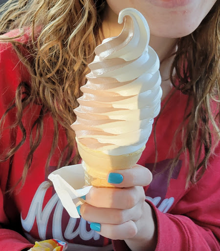 We never even realized the name was Spad's Twisters actually. Everyone just calls it Twisters. Regardless of the name, it's a nice little place to get ice cream. The location is perfect. It's right off the main drag in town, across from the library and within a 5 minute walk from Kindleberger Park (and the little league fields there). The service has always been really good. It's mostly younger people, high school age, that run the place but I have seen the occasional adult. No matter who or what age has been there, the service has always been perfect. They do have quite a large number of ways you can get your ice cream, from simple soft serve in a cup or cone, to floats or flurries or smoothies or just about anything you can think of that can be made with ice cream.