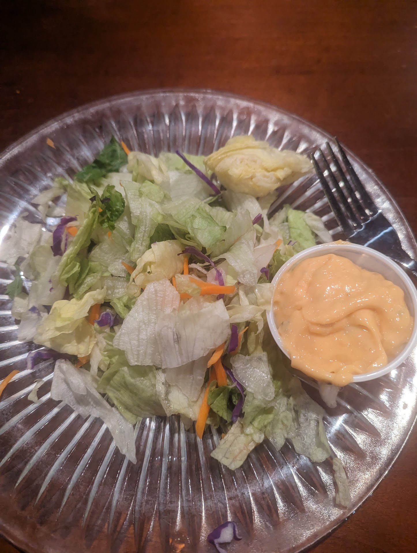 My nephew ordered the chicken strip meal which she returned to the table and asked if we would like the childs plate. The waitress was informed that he was 11 and the menu stated 10. She stated that was fine so we agreed since we knew that would be just enough for him. She then returned to the table inforning us that the childs plate did not come with a salad. We asked if he would like one and he wanted a salad to which she informed us that it would be a $3 additional charge. However, when the bill arrived, we were charged $7.99 for the house salad (which is a plate of spring mix, 1 small wedge of a tomato, and butter sized ramekin of dressing). When we questioned the discrepancy, she nonchalantly said, I wasn't going to charge full price for the salad, but it was "only $2 more" than what she initially mentioned, even though it was clearly $7.99.
