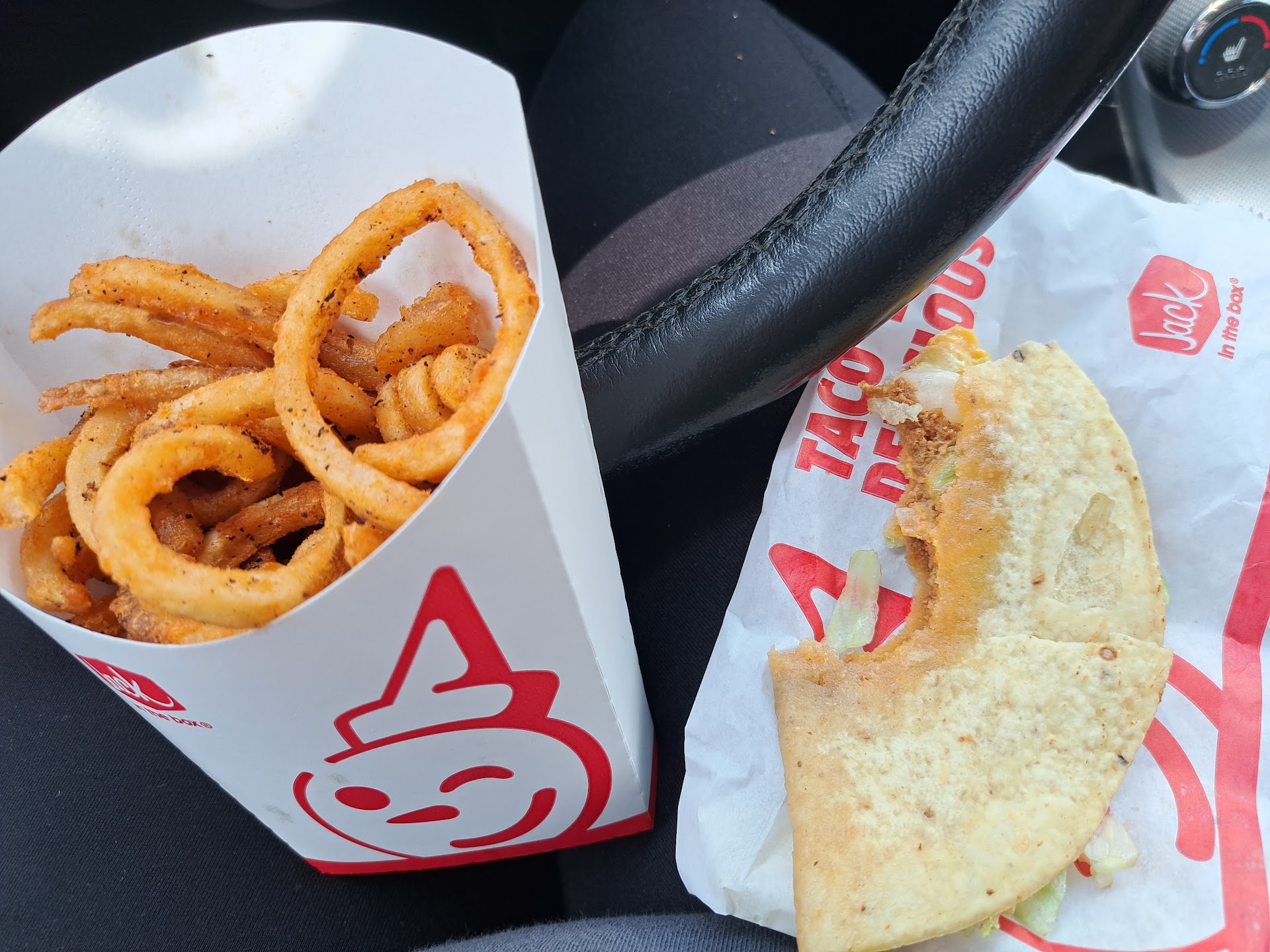 Read moreI don't know if the associates or the door dasher that just dropped my order off was having a bad day but something somewhere is wrong. I would have done better digging in the trash can outside of Jack in the box, I'm certain I would have pulled out something that was safer to eat and feed to my 2 year old. Now if it had absolutely nothing to do with the store and the fault lies within doordash, yuck and the CEO of doordash needs to do an undercover boss episode. The company needs to increase the incentive and provide their dashers with some form of food allowance because the youngster that dropped my order off tonight is clearly hungry and missing meals. If you happen to come across this review young dasher, you are more than welcome to come and finish the rest of your meal. I mean that with all sincerity also. I will not ever get mad at someone for being hungry but please next time , just don't show up and by all means enjoy your meal. The leftovers you accidentally left are still here just like you...