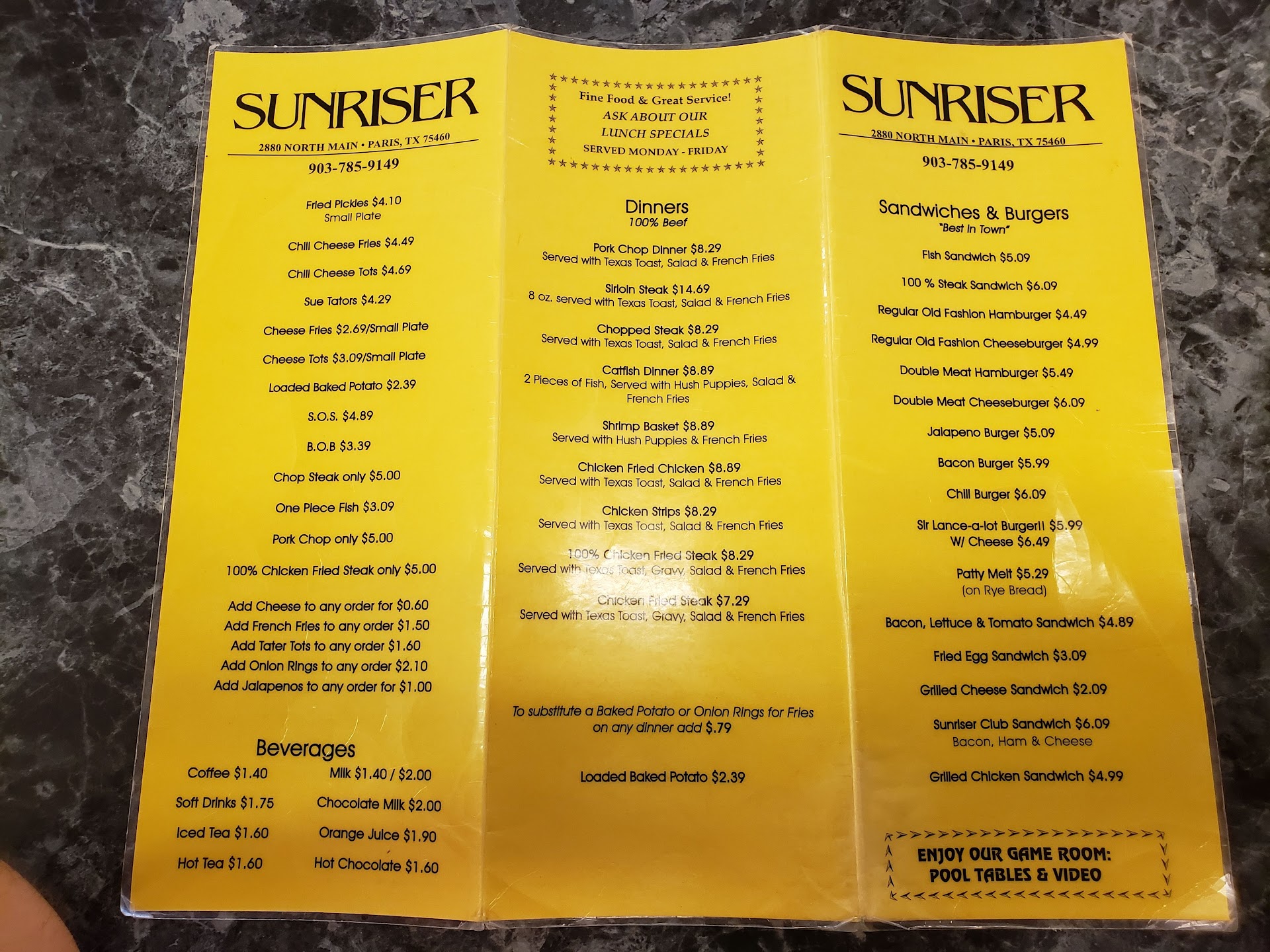 This used to be my absolute favorite diner in Paris. I've been going there fairly regularly for the better part of 25 years. In high school and just after, it was three or four, even five nights a week I was there sometimes more than once a day. I have always counted on them having excellent food, humongous portions, friendly & familiar faces and very, very extraordinary prices. The last few times I've gone the food quality has been somewhat less than superb but still good and still plentiful. Prices had gone up a bit but not tremendously. Tonight though, I put in my usual call in order, one cheese omelette with a side of home fries and western omelet add jalapenos & bacon with a side of sue taters.. and my total was $35 and change. I was charged nearly $8 for a plain cheese omelet! That's what two or three eggs and sliced cheese, two slices of toast, and half a handful of hash browns.. The Western is the same except add some peppers, onions, a little ham, plus my jalapenos and bacon, it was nearly $15.00 all in! I was floored, I know prices have gone up on things but that is ridiculous. Easily more than double what I paid less than 2 months ago. I mean come on really $1.29 to add jalapenos and more shockingly, $4.00 to add bacon to my omelette! I told myself as I left, it's only money, it'll still be good.. but it wasn't, the food was not anywhere close to the quality or quantity that I had grown used to, and still yet, far below even my more recent visits.. I should have realized when I pulled into the parking lot and I was the only customer. There was a time the Sunriser would be bustling even at 1:30 in the morning on a Tuesday.. I've always told anyone that asked, the Sunriser was the place to go. Needless to say I won't be giving that recommendation anymore.. & It'll be a good long while before I go back...