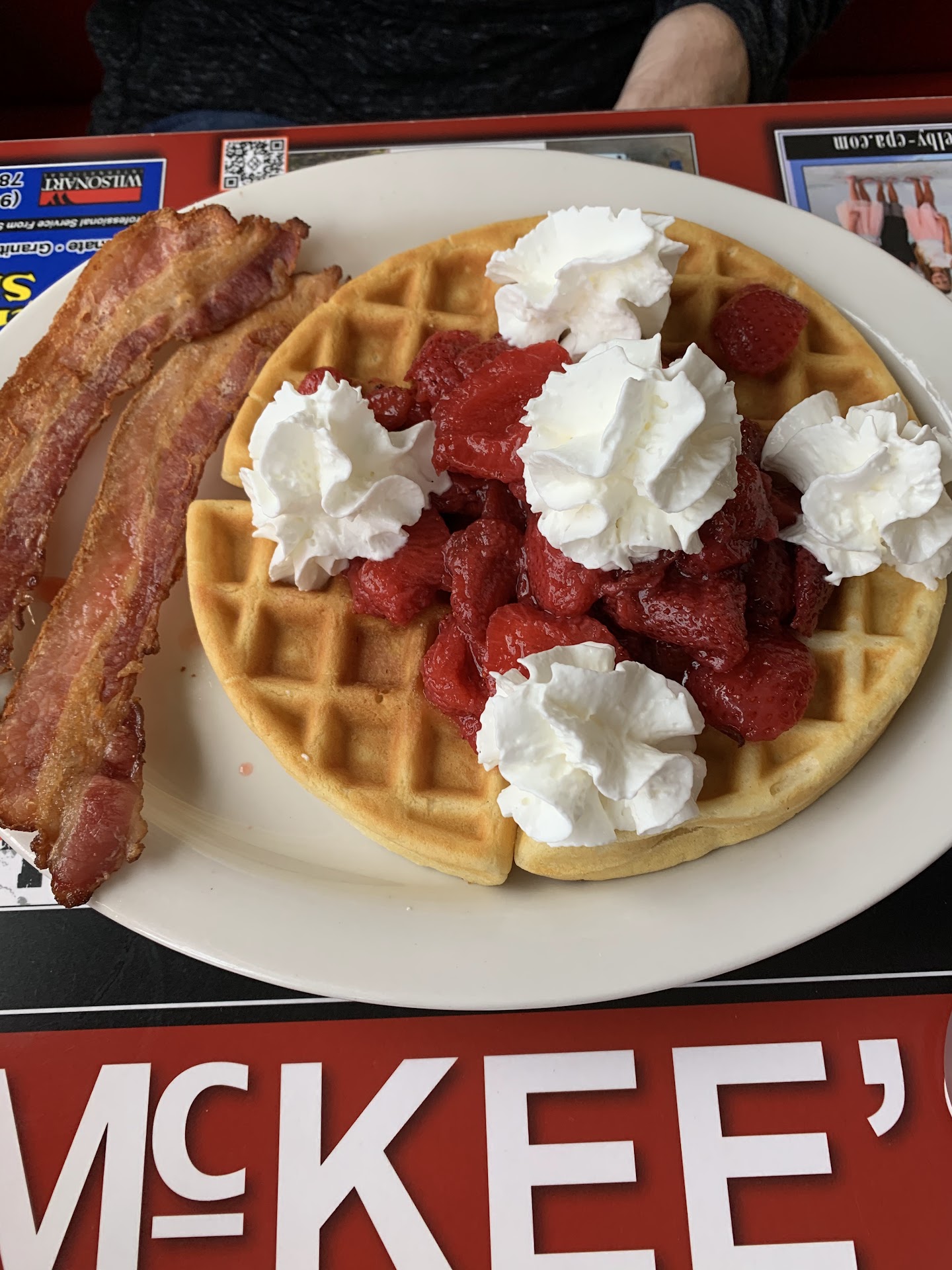 Being from a small town, I love visiting local cafes instead of the big box restaurants that serve the same food you can get anywhere. I was excited to discover McKee's close to where we were staying. I was even more excited when we walked in and there was a board advertising a Friday fried fish special. I got the 3 piece fried fish that comes with French fries, hush puppies and Cole slaw. My wife got "adult chicken strips". The best I can say about the food is that it's very "industrial". It's like if someone saw food for the very first time and tried to recreate it in a lab, flash freeze it, send it somewhere to be reheated and served. It technically looked like food I guess, but tasted like all the joy of actual food stripped away. My 3 piece fried fish was 1 piece of "fish" and two leftover nubs, maybe half the size of a credit card; maybe barely the size of one piece if you put the two together, if I was being extremely generous. Fine by me, because it wasn't great. I can't even describe what the tarter sauce was like. I've never seen anything quite like it. It didn't appear safe to eat. My wife's "adult chicken strips", were the same industrial quality, food-like without any love. Not even a child would enjoy them. The service was friendly enough and the best thing I can mention about the place. If this is representative of local, small town cafe dining in 2025, count me out. I don't remember the last time I had such an unpleasant dining experience. Definitely not anywhere near worth almost $30 with tip. Stay...