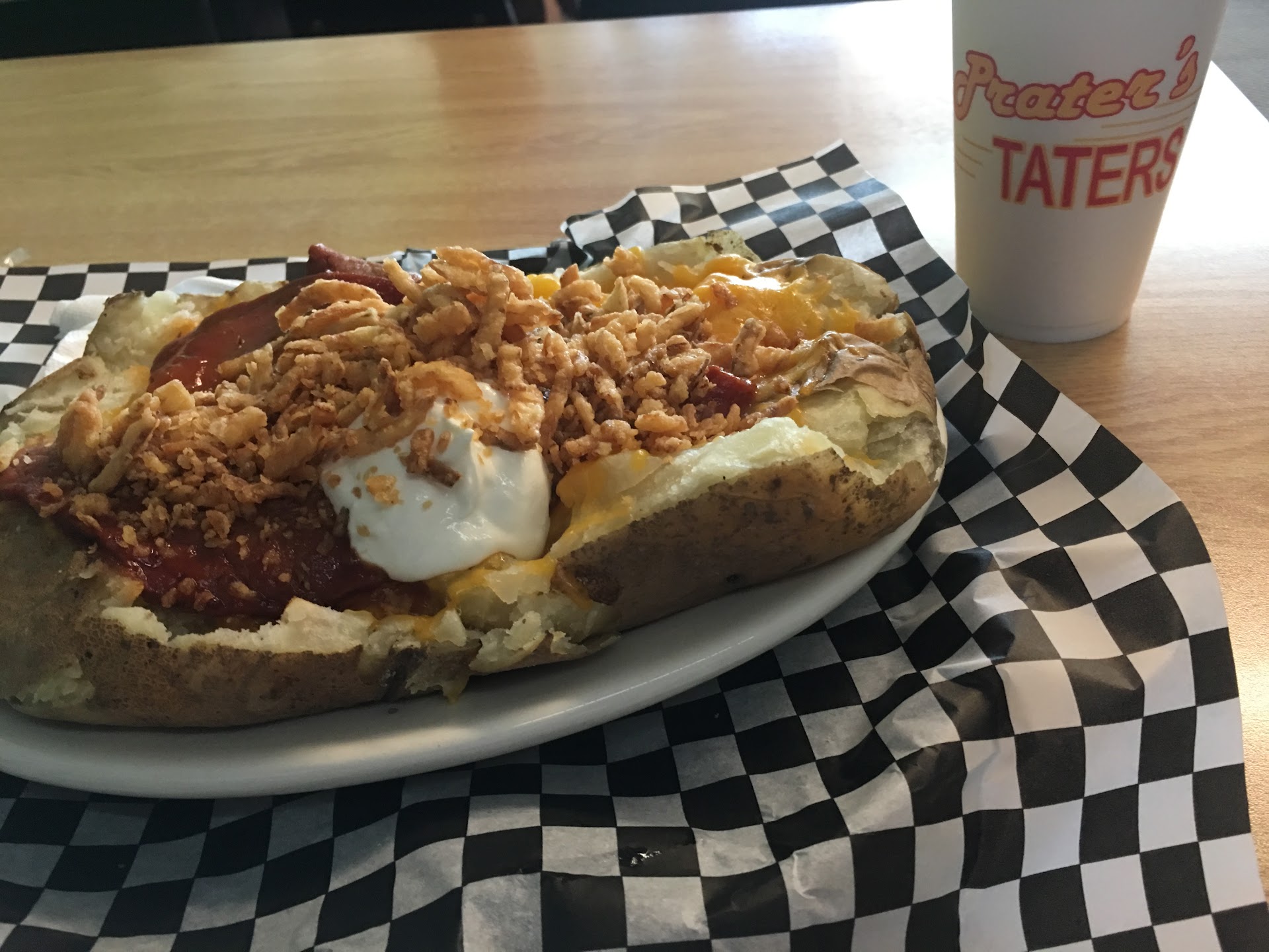 Read moreGreat food. I didn't really think I'd necessarily like it but turns out I was wrong . I ate the BBQ BBQ baked potato. It was very good. Comparable to the real deal BBQ house style loaded potato with chopped pork. The so many types of potatoes dishes there. I still can't get over the fact that they make potato meals totally satisfying. Next time I'm going to try the taco style potato. If your in the area I'd recommend trying this place out. They have mr. Potato head toys there to wow the lil tumbleweeds , the ladies working there are pleasant and hardworking. Also they have really neat homemade cookies. I think we bought two heath bar cookies. Nice little place....