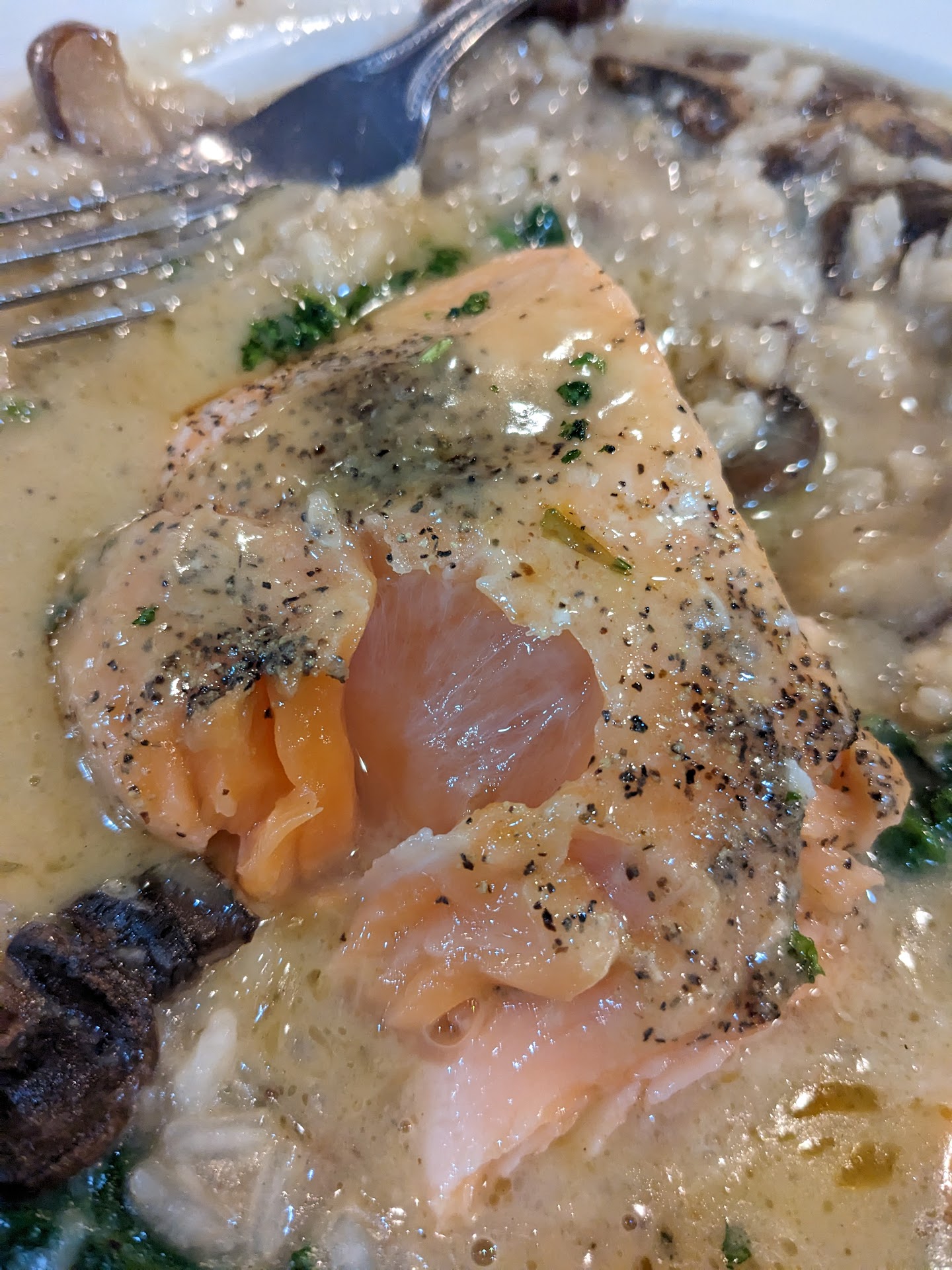 I'd like to give them 1/2 of a star. We should've realized when we walked in on a Saturday night and nobody was in there eating that was a bad sign. We ordered our food it took a while to get served. I ordered salmon, my husband ordered a chicken sandwich. The salmon was undercooked and slimy, my husband's chicken was not cooked all the way. Let's just say it wasn't a meal that was worth the money we paid. Our meal cost around $120.00 . I don't mind paying alot for a good meal but this was horrible and we couldn't eat hardly any of it because of it being undercooked. We couldn't get our waiter back to the table to have our dinner taken care if and have cooked all the way. So if you're in Park City this is definitely a place you don't want to eat at. Don't waste your money...