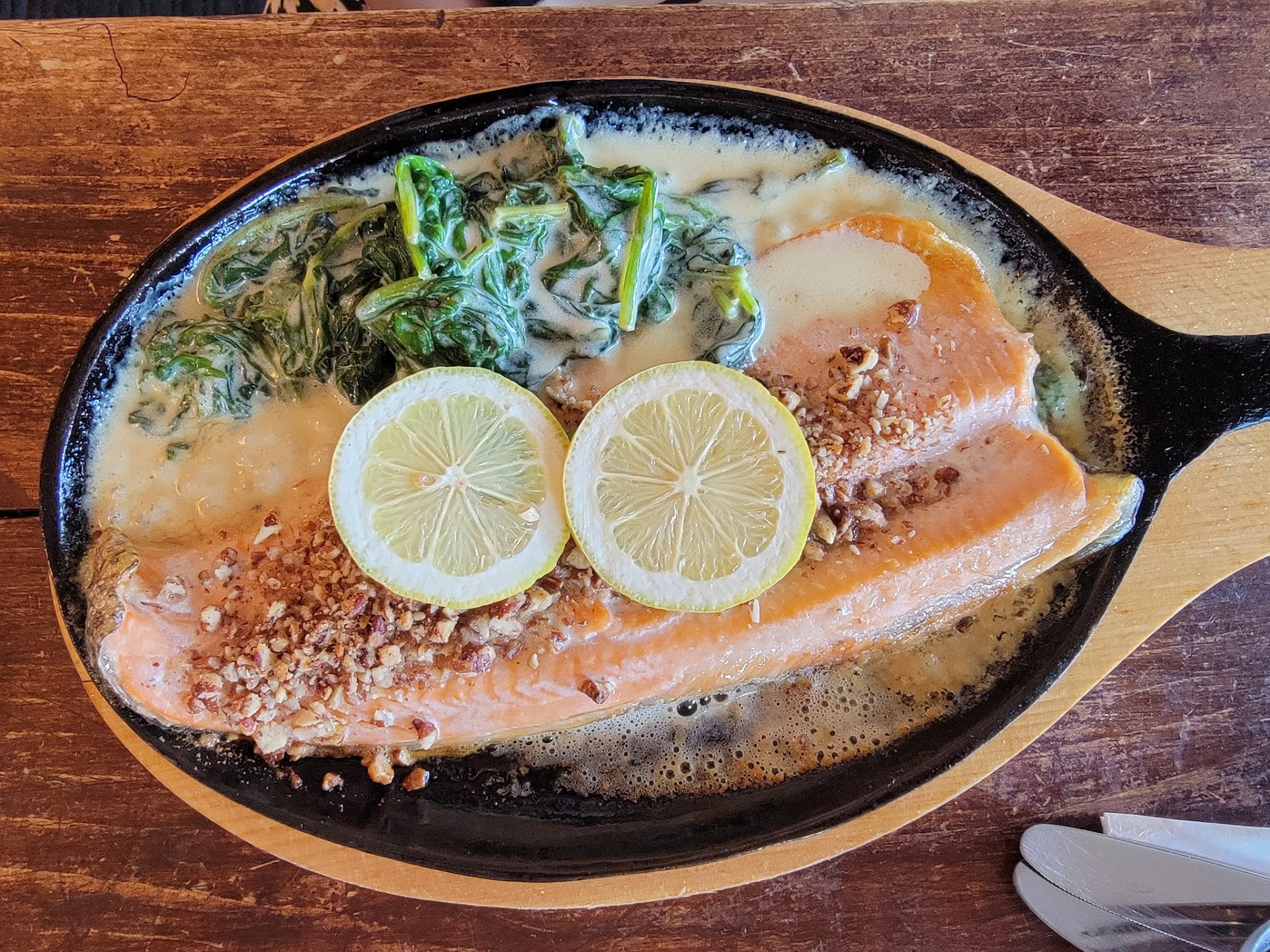 Now the bad. We had a large party of 8, and we ordered A LOT of food. We had spicy fried shrimp as a starter and I for the life of me couldn't taste anything remotely spicy, I've smelled black pepper with more spice than this shrimp. Then I personally ordered the bison burger, and let me tell you something, DONT. it was the driest thing I've tasted since attempting the cinnamon challenge when I was 14. The burger joint at Antelope Island has the best bison burger to date. Other memebers of my party ordered Pecan red trout, and the halibut which was also dry, almost like they dehydrated all the fish before putting it out. The only thing that had taste in the red trout was the pecan, we might have well just ate a butt load of pecans for a better taste. The halibut was so dry it could've been listed as jerky, probably would have tasted better as jerky too.