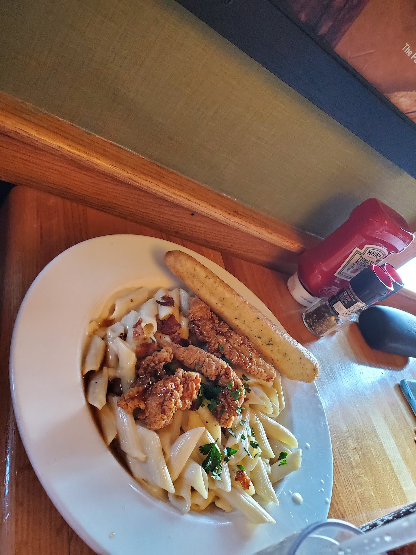 We considered leaving but decided to stay since we’d already ordered a beer and didn’t want to risk the server having to cover it. Unfortunately, that decision cost us. The service remained unpleasant, the plates came out dirty, and the food looked questionable. My husband and I split a steak—something we usually enjoy when ordering the 8 oz sirloin with mashed potatoes Carside to Go—but this time, it tasted so off we couldn’t get past two bites.