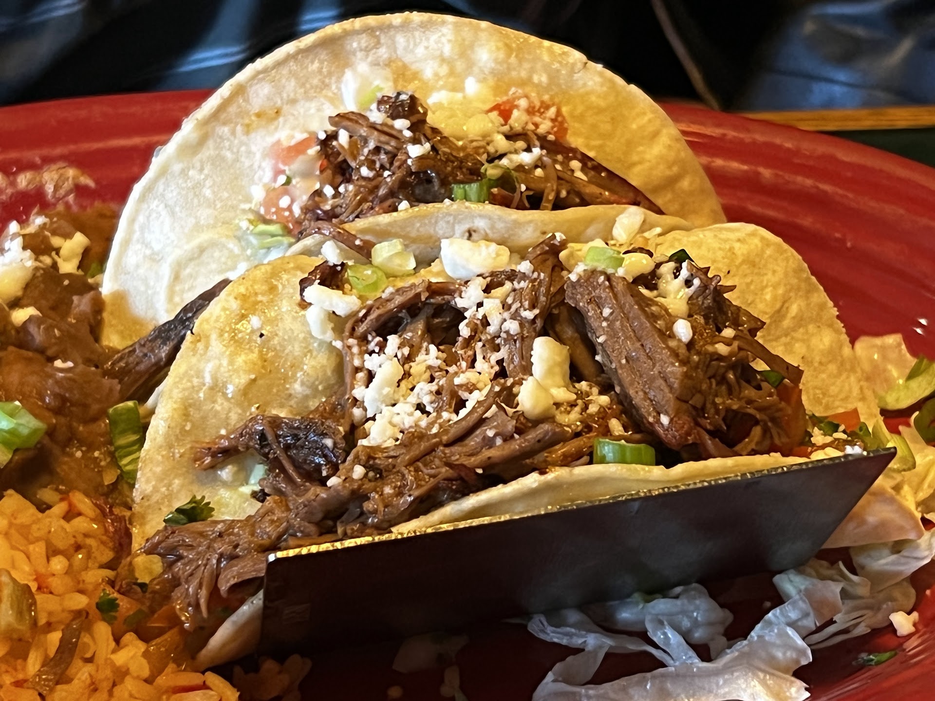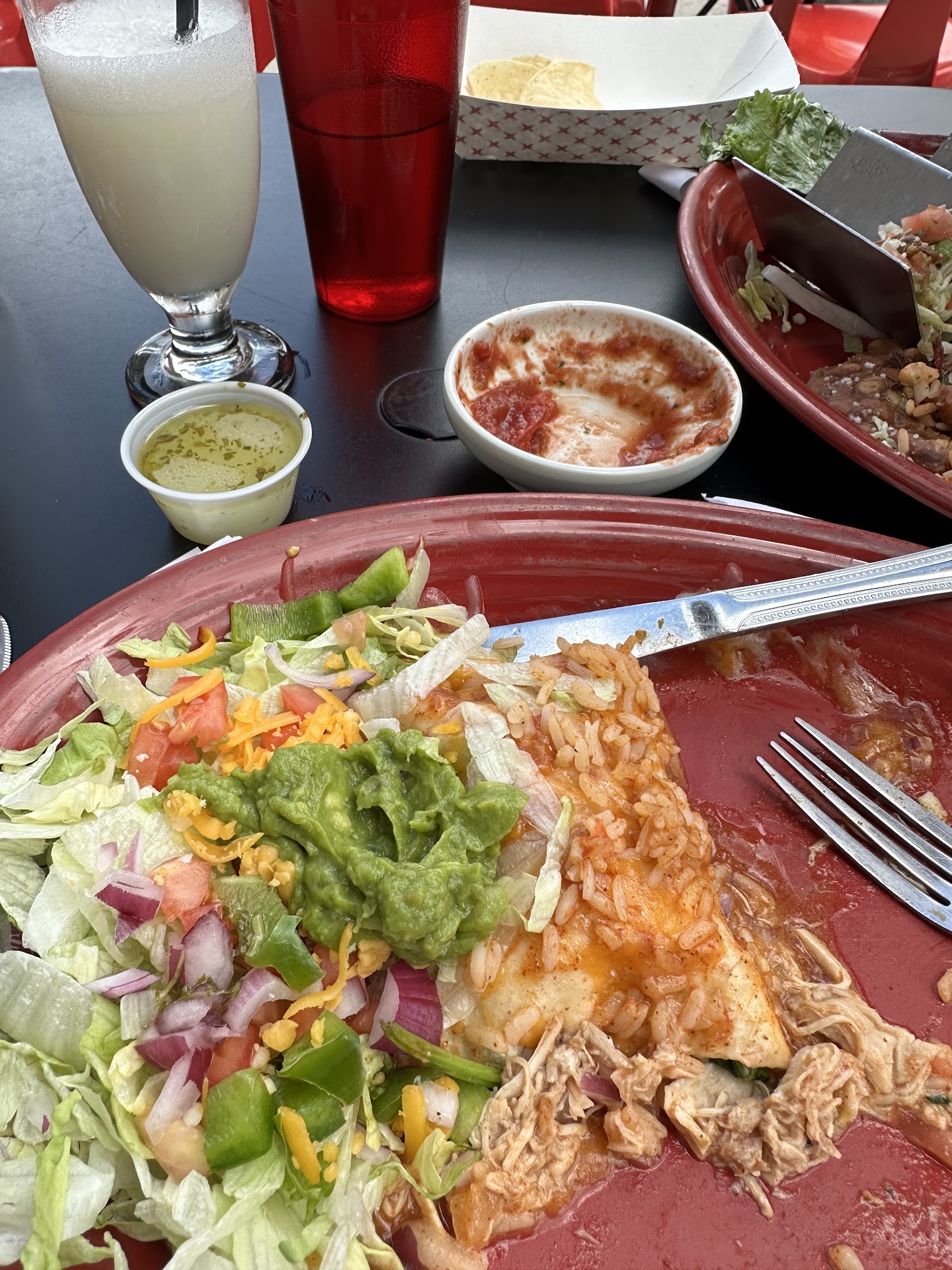 So we wait, finally our food comes, and almost all of it is either cold or BARELY warm. Again, we remind the waiter that there are no drinks still after 1.5 hours. The tacos were so cold that we ending up sending them back, as they didn't taste good after sitting for so long. He comes back with the same tacos that I guess he had just tossed in the microwave. The lettuce was wilted and it definitely didn't make the meal taste any better. The rest of the food we decided would be better off just eaten cold.