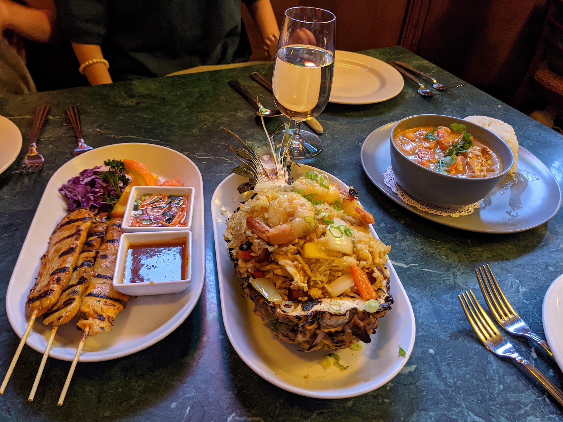 Ā Ā Ā Read moreLet me first preface by saying Iām not a foodie and pretty easy to please. Came here with my 9yo because other Google reviews said it was family friendly. Restaurant policies were very restrictive and not accommodating at all. Like, not at all. The server did his best but itās like the kitchen comes before the customer. They didnāt give us a kids menu, has to ask for one. And the options are not kid friendly. We asked to substitute noodles or get noodles as a side and they said no. Weād have to purchase a $25+ dish and ask for just noodles to get noodles. Which is a pretty common request at every Thai restaurant Iāve ever been to. The chicken satay was awful. Some of the sticks were overcooked and others were rubbery- my kid will usually eat 3-4 sticks no problem, but only ate 1. The calamari was just rings and came out cold and breading wasnāt crunchy at all and portion size was tiny for the price. But then portion sizes for the main entrees were huge but the food was meh. Compensating for poor quality with quantity. Doesnāt seem like theyāre concerned with repeat customers, so they get away with this. Not sure why this place even has a 3.9 rating. And thereās a surcharge at the end if you try to use a credit card. Will never come back here but sharing my experience for others looking at coming...