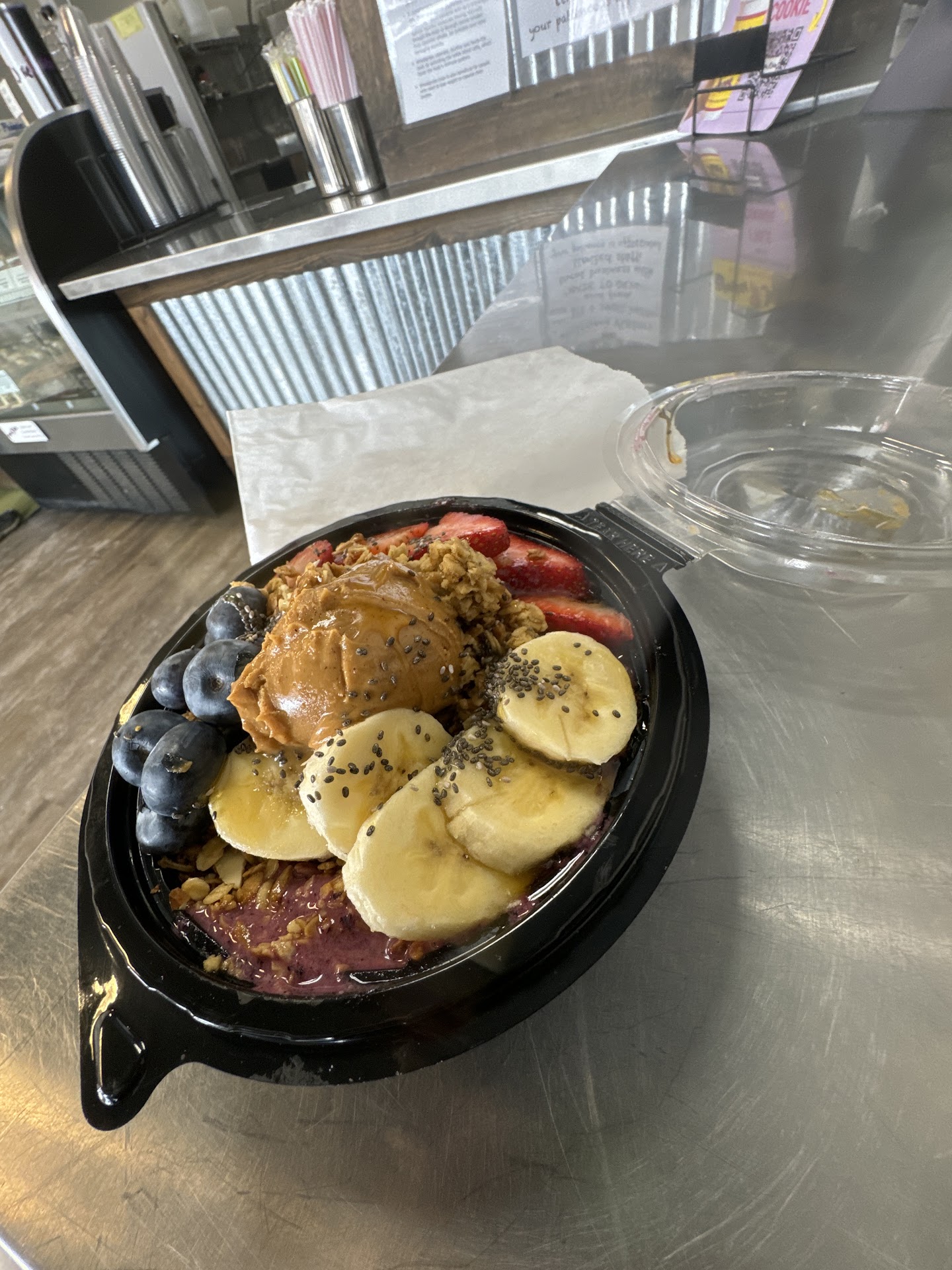 We popped in here craving some fruits and greens and found that there aren't a lot of options for smoothies in Park City! This little cafe gave us exactly what we wanted! The person at the counter was a little hard to understand but we read the menu and choose from that. I tried the TropiKale smoothie and it was SOO good! My friend got the Very Berry and she also really liked hers too. They had a decent selection of baked goods that were gluten-free and vegan, but we didn't try any. They also offer some other snacky items and they had plenty of seating available. I felt like the atmosphere was a little lacking, like a coat of paint and some decluttering, and maybe an accent wall or cute sign could really make this little spot trendier and IG worthy. As it was, the smoothie was great and I'd recommend it to anyone looking to get some fresh fruit/veg in while...