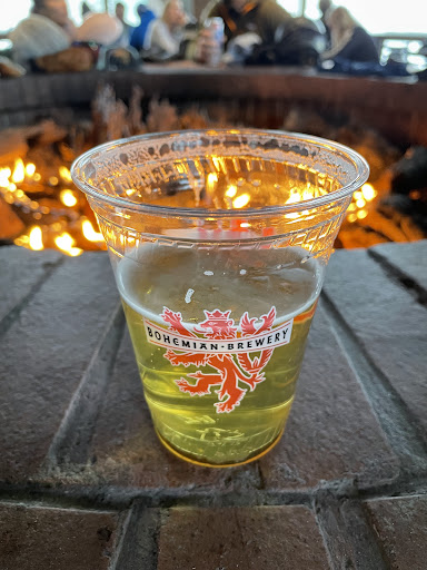 I loved sitting at the huge fire pit and drying my gloves, hat, etc. while having a beer.