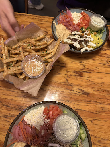 As for the food—wow! The menu offers a unique blend of Mediterranean-inspired dishes, and every bite was full of flavor. The Medi Bowl was out of this world—perfectly seasoned, juicy, and paired with fresh, vibrant toppings. The fries were crispy and seasoned to perfection, and the dips (especially the hummus) were so creamy and delicious. Every dish felt fresh, made with high-quality ingredients, and bursting with...