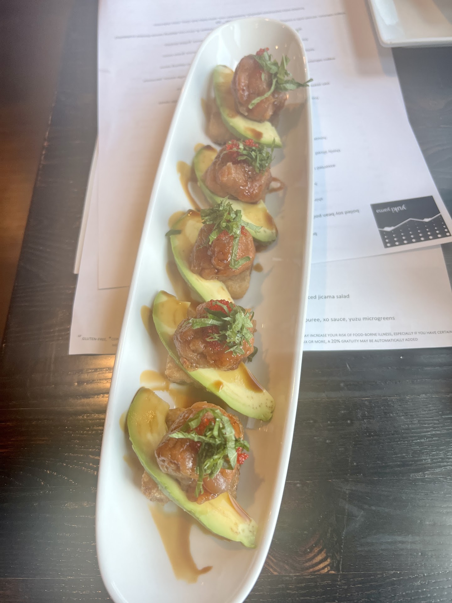 Read moreA truly delightful Japanese restaurant with superb food and great service. We started with Bluefin tuna (sustainably farm raised) and salmon nigiri. Buttery soft and flavorful. Next we had the grilled octopus specialty. It was seared so it had a crisp edge but tender center, with an amazing black sesame garlic paste, kimchee and red vein sorrel. Then we enjoyed their 84060 special maki roll of tempura shrimp, red & snow crab, mango, spring greens, rolled in soy paper with sweet soy sauce. The spring greens really were a nice addition with their crispness complementing the shrimp and crab.