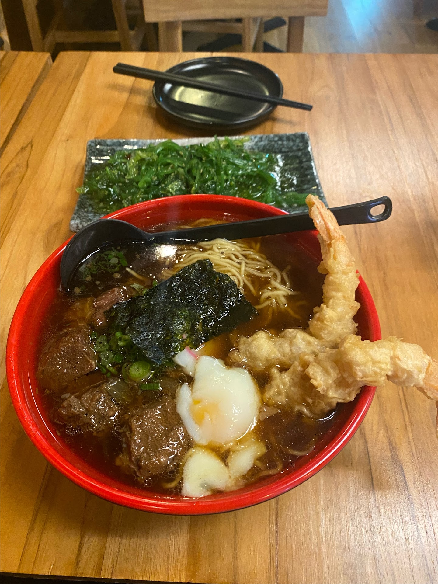 Tempura shrimp was good but thick batter thus oily. Quality of the pork was poor, very fatty cut. Overall very greasy and sat heavy. It’s honestly one of the worst ramens I’ve had sadly. I’m not saying that to bash the restaurant but I’m just shocked at the overall good rating.