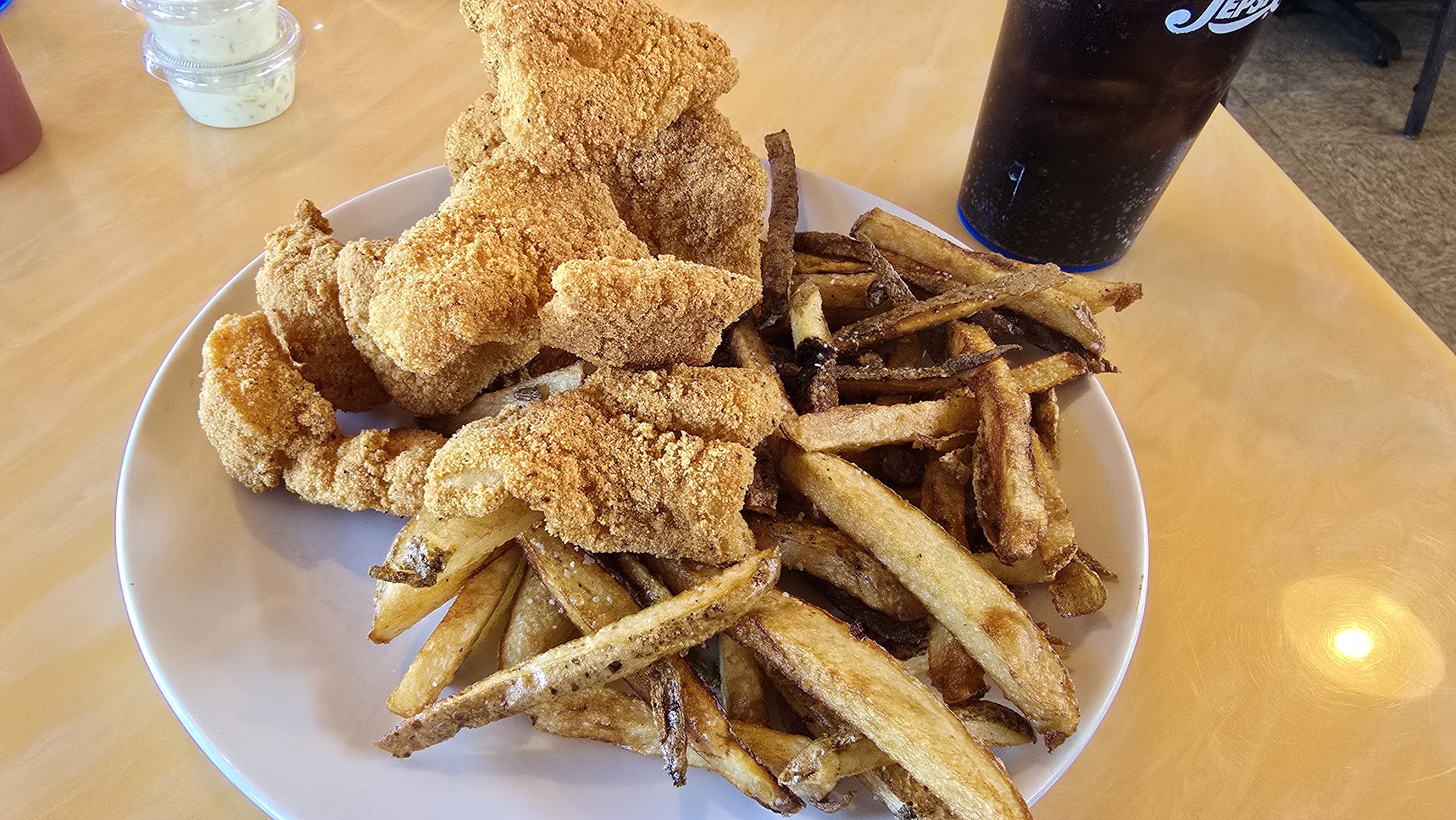 Read moreOk I have to say I was skeptical about eating here after reading some of the reviews, but after going to softball games all day, we were hungry and honestly, I love fried pickles. To say they were the best in the world…not sure. But there were enough for 5 hungry adults to share and we all thoroughly enjoyed them. 3 of the adults had the catfish and again, we ordered the snack, the dinner and all you can eat. We all had plenty and had enough to take home two boxes. The pub chips were also huge portions and we took home 2 boxes of the leftovers. 1 had a spinach, strawberry salad with bacon and blue cheese…delicious. She had the raspberry vinaigrette dressing with it. The last adult had the burger with bbq sauce and bacon and shared some of the pickles and pub chips. Kaitlyn was our server and the only one in the room. Our drinks were filled constantly and she checked on us constantly. Honestly the only thing we were not a fan of was the loaded potato salad. In fact we all left most of it uneaten. BUT the other food was delicious and service was incredible. One last thing, the ladies restroom could use some attention. We were there on a Thursday evening about 6:30 and they close at 8:00. I would recommend to others. Debbie...