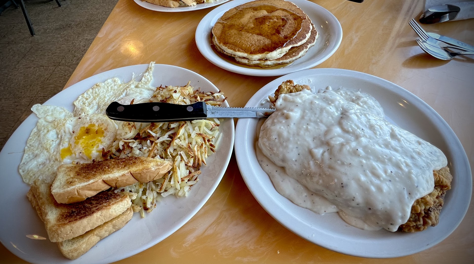 Read moreI'm not sure what's going on with the place but I'm pretty fond of the owner and I enjoy eating the food. The service is making the business suffer. I walk in and every single table is dirty with water or some sort of food on every table. Server wipes it down with a soaking wet dirty rag, sets the paper menus and straw on the wet table. Brings my drink, tea is sour, give me a dirty look when I tell her that its sour. Brings my food, INTERRUPTS PRAYER WITH A COMMENT when she brings my water. Disappears for my entire meal and I have to take syrup for the pancake off of another table. I'm really not a complainer! But I am serious when I say I will not be back! Not to mention I'm pretty sure she charged me for the tea anyway. I'll find out and I'll update later. Customer service keeps customers coming back! You need to let them know...