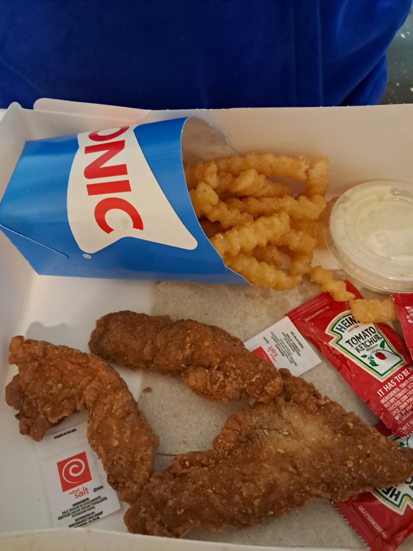 I don't normally go to Sonic, but they've been pushing the flavored drinks, and I've been on a nostalgia trip, so I went two days in a row because It was convenient, the only food I ordered was the tots. Both times it was fine, the second time I didn't get any salt, but that's okay because I brought pink himalayan salt with me. The first day I was ordering a flavored sprite, and the girl had no idea what I was saying. It was actually pretty funny, because I lived here when I was a little kid... A few seconds goes by she comes back and says "did you say sprite?" With astonishment in her voice. I said "yes ma'am" haha!! Oh, and when I first pulled up in the easiest parking spot, a girl came out and told me the speaker was broken. Also very much a funny thing because these things happen, for me it just happens a lot.