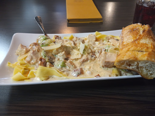 Read moreThis place is a bit deceptive on the outside. It could just be a place to grab a not so special sandwich. A quick bite to eat as you shop the downtown. But it is so much more! Their cocktail list alone makes me wish it was just a thirty-minute ride and not a 3-hour road trip. I had a fantastic raspberry sangria made with cabaret, peach schnapps, lemon lime soda, and pureed raspberries. I've found sangria can be hit and miss, but this one, albeit with out fruit floating in it, was a definite hit. (It was garnished with a slice of orange and a cherry.) I then ordered the parparelle --am I spelling that right?-- basically a wide fettuccine noodle -- in cream sauce, with roasted Brussel sprouts, chicken, and prosciutto. Mamma Mia, it was good! I don’t even like Brussel sprouts; that's how good it was. (So glad I didn't see them listed on the menu or I would have missed out. Like Mom always said, just give it a try.) They served the entree with a half loaf of salted garlic bread, still warm. It didn't look like a lot of food, but I had to get a box to take half home. You know why, of course. I was thinking about the dessert list! The lemon cream cake caught my eye. Took that to go, too. Hey, it's not like I wasn't going to be hungry later! The cream was definitely tasty, but the cake was a little dry. Ah well, I'm not complaining. I've got my lunch all set for tomorrow. Oh, and terrific service. They seem to have a good team. Note: You'll splurge if you go here. $43 bucks with tip. And if I wasn't driving, I definitely would have had a second sangria. I gotta feeling it would be even better than the first. So, nope, not a sandwich shop. But...