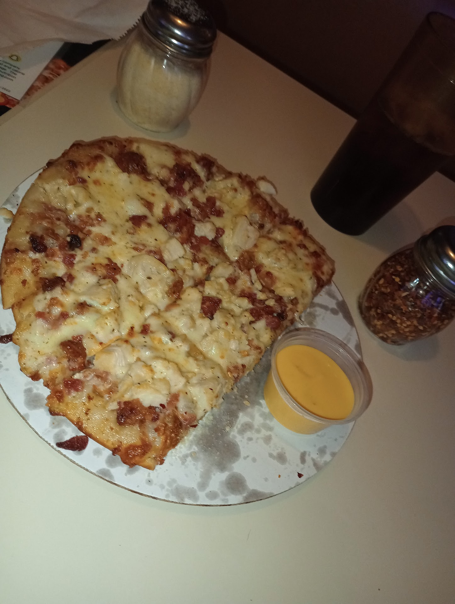 Read moreI called in and placed an order for a14” royal feast half without mushrooms and an order of 1/2 baked breadsticks. When I walked into the establishment no one greeted me there were 3 employees sitting in a booth next to register and one employee I assume was manager was reprimanding another employee while the other employee I assume was a witness all where customers were able to hear everything said and also the employee working in the kitchen walked by a couple times and never looked out front. There are no bells at register to to let customers know that they were there. Also our pizza had mushrooms more than halfway and the breadsticks were hard and dark brown. I’m from Parker City and have also worked at this location and had never had such a bad experience before so I was very disappointed and...