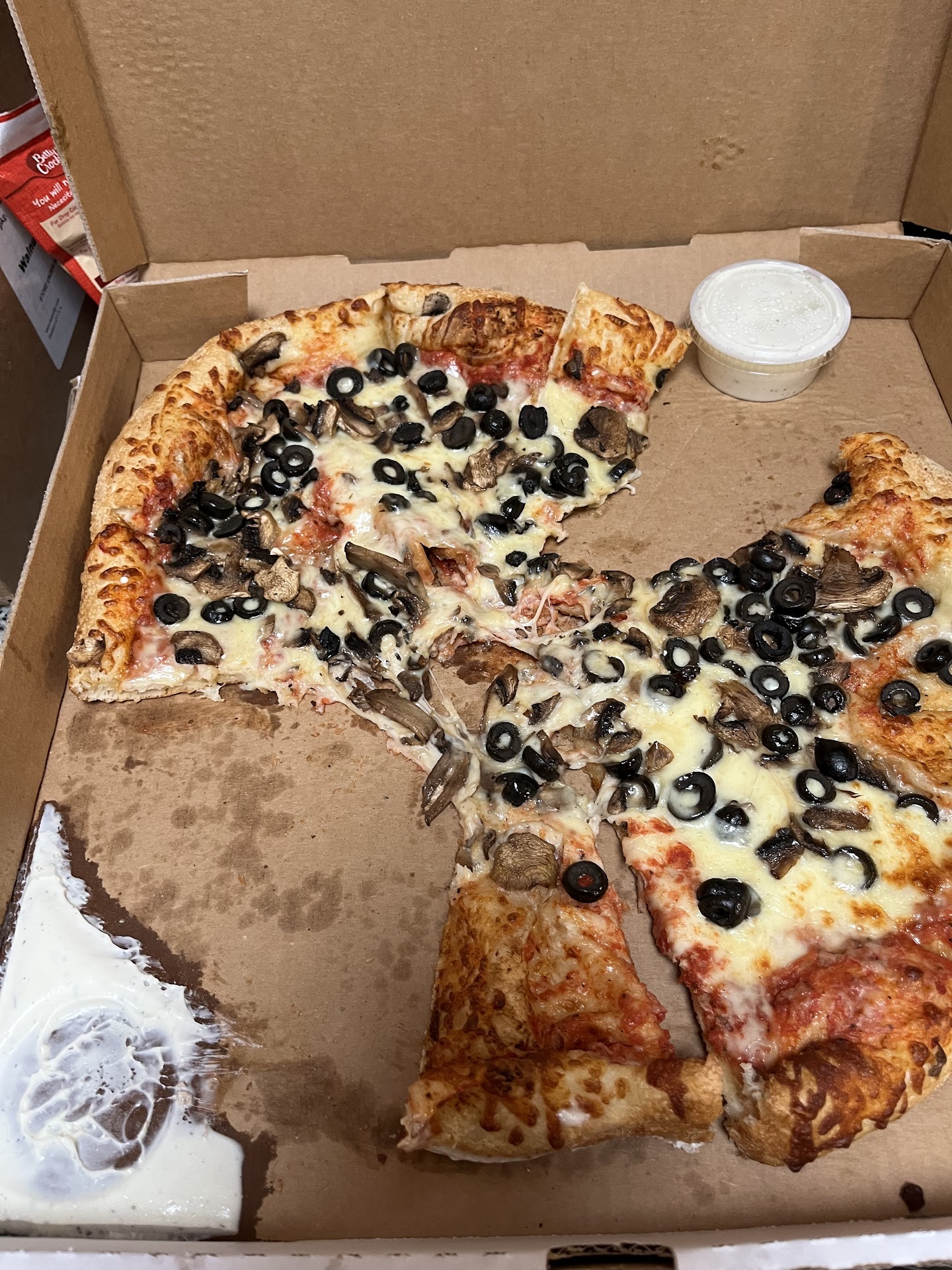 After ordered, we sat in the car for the allotted 15 minutes right in front of the window where the staff were making orders. I witnessed one larger man making pizzas without a mask on before we entered the store, also no one was wearing gloves.