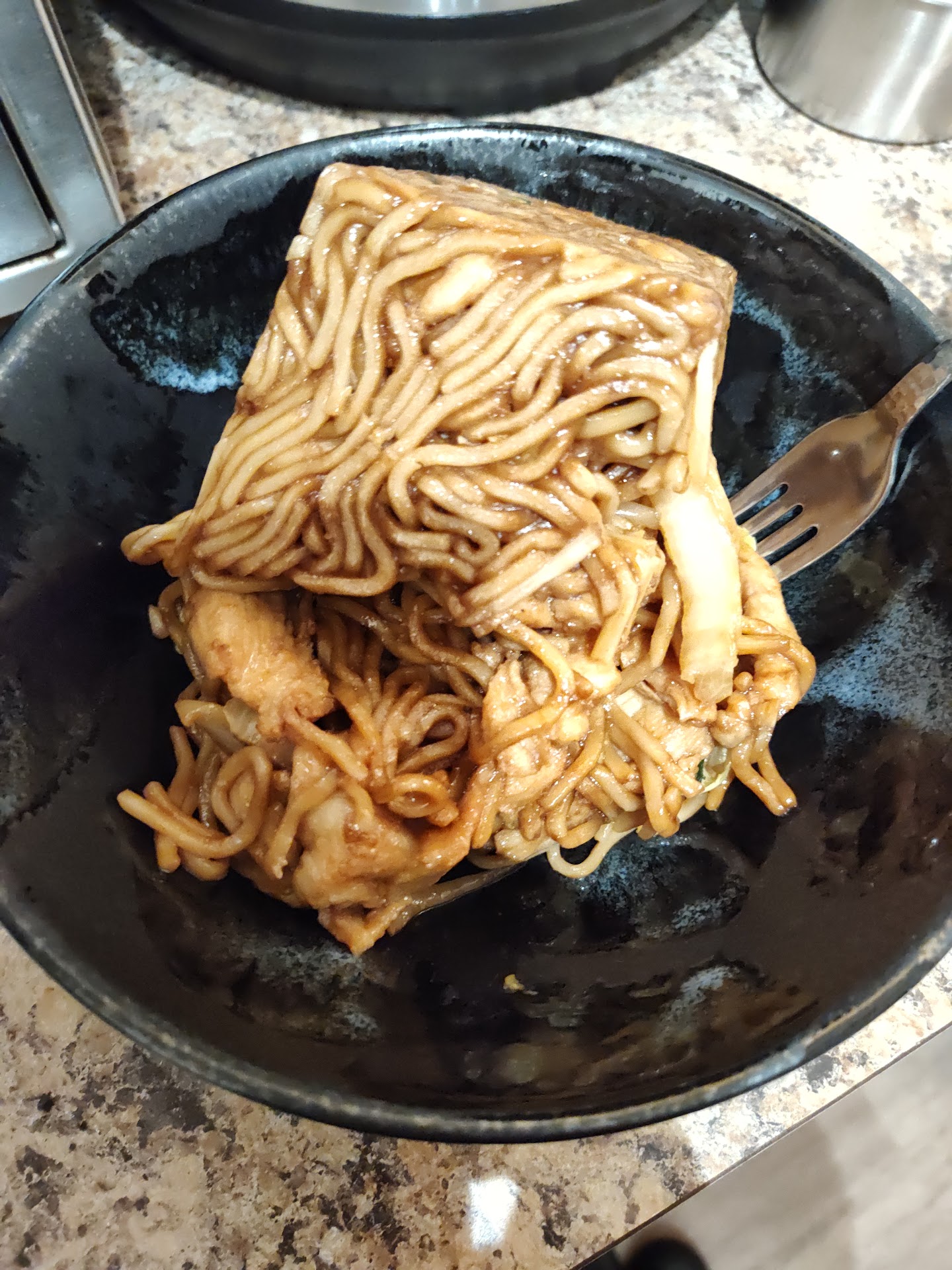 As for the food: The dumplings are nice, and they were the only thing. That's the best thing I can say. I had an order of orange beef, chicken lo mein, dumplings and egg rolls. I picked it up at the time indicated on my order, and let me tell you: by the time I got there, the orange beef was absolutely soggy and sodden, all the way through. It is downright mushy. Not a single iota of crispness. I believe it was cooked well, as it tasted well prepared (not good though, for other reasons) but they very much need to avoid MASSIVELY over-estimating the ready time, to the point it ruins dishes. Additionally, it is severely too sweet. I know this is always a risk when I order anything from an American Chinese place, but this is one of the worst offenders I've had in a long time. The sauce is basically concentrated syrup. Let's put it this way, there were actual orange pieces, which is commendable, but I was using them to CLEAN MY PALETTE of the sauce. I'm hormonal-hungry right now, and did not finish the dish. My husband got chicken lo mein and allowed me a few bites. But... here's a picture of what it looked like coming out of the box. They stuffed it down and it was stodgy and congealed. It does taste better than the orange beef, and I usually scoff at reviews that say things are bland, especially Chinese, but this was indeed bland. Chinese food that is simple and well prepared is a delight. This was 90% cheap noodles and uninspired sauce. The wok hay is just not there and that's a make or break for me with lo mein. It IS a simple dish, it's supposed to be. I make it better myself and I'm by no means Chinese. Dear owners: You should try these two condiments. Dark soy and shao xing wine. Why are they in my kitchen but not yours?