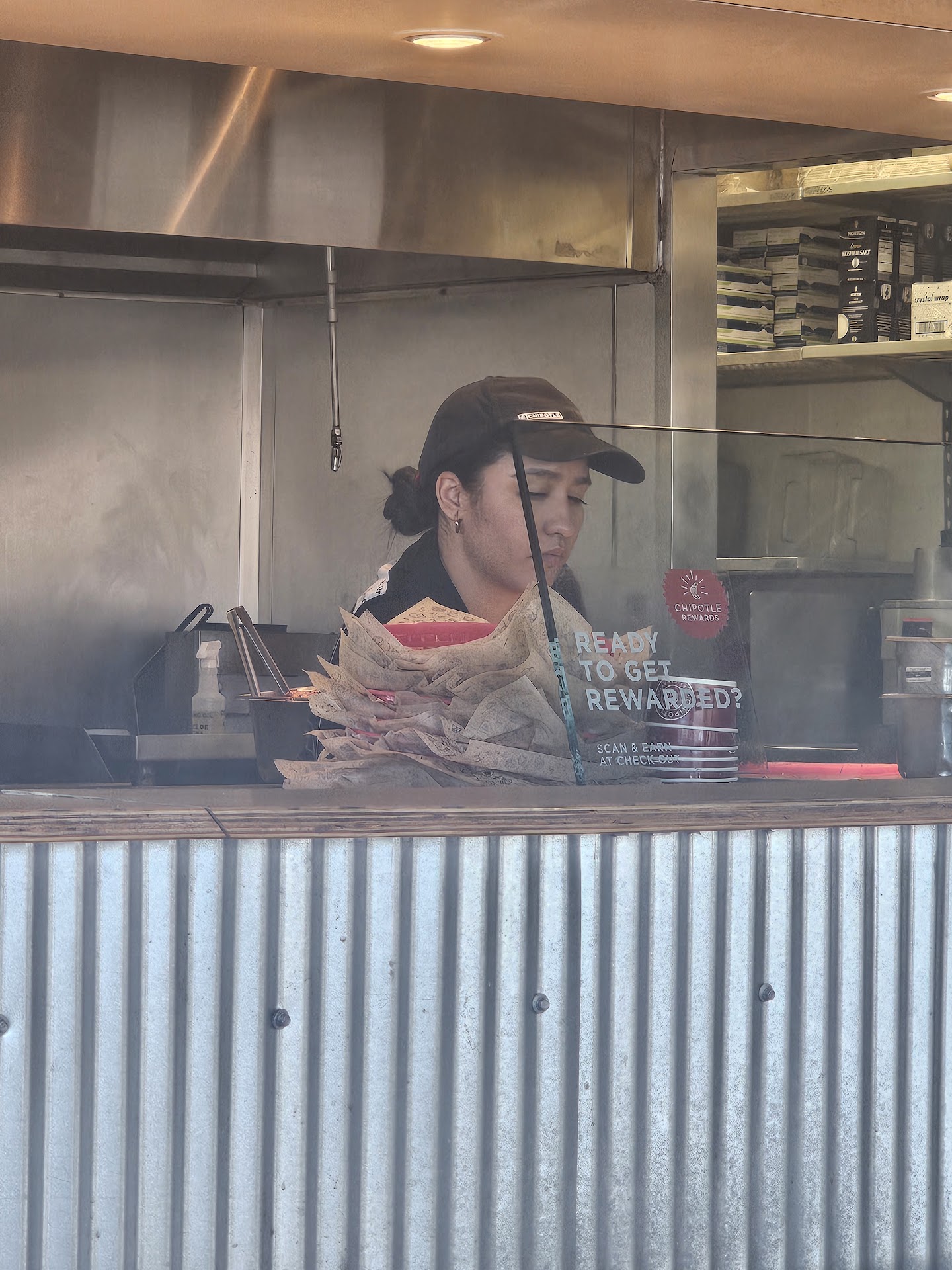 Today. My husband and I stopped in to get our lunch and this employee rolled her eyes at the line forming, visibly started getting angry that CUSTOMERS were coming into a store that is customer driven. I ordered a bowl and my husband a quesadilla. This woman added what looked to be a teaspoon of cheese and a table spoon of sour cream even though I said I would pay for extra. When she shook her head in annoyance of my customization of my order she yelled something in a different language and looked around the corner to the back to a manager. She neglected to put lettuce on my bowl and complete refused to put corn on my bowl. The cashier was so sweet and quiet and could tell she wanted to fix what the angry line person was doing towards customers..