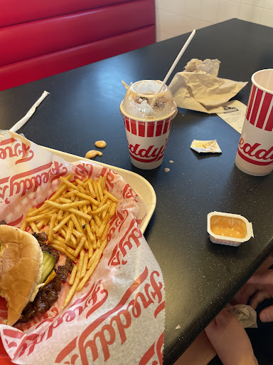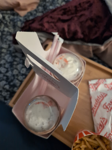 As soon as I walked in, 2 employees were making out at the cash register. I brushed it off my mind and ordered my chocolate concrete Sunday and Freddyâs original burger. I specifically asked for no drink but they proceeded to hand me a Freddyâs trademark medium drink cup. Since I didnât want any smoke I walked away from the situation with my cup that I didnât even want in the first place. As if they hadnât done enough damage already, as I reached for a straw for my medium Freddyâs trademark cup, I realized there was non. I politely asked the employee if they had any more straws and she said, I quoteâwe wonât give a customer like YOU(I am a 5â5â 10% Hispanic man ) a straw. After this, I sat down and sipped my strawberry lemonade straight out of the cup with NO straw. At this point, I was already INRAGED. Shortly after, I hear my order number 139 called. As I strode up to the counter looking for my order, I was quick to find out that in fact, my order was not even there. I sat back down in complete wallow. After this point, I had to wait another whole 2 minutes because the employees started making out again. After I finally got my order I thought my pain was finally coming to an end. But no. I was sorely mistaken. Oh how wrong I was. Oh boy oh boy i cannot stress this enough. I had order a mini turtle concrete ($3.10) but this concrete was nowhere to be found. I stormed up to the counter and was ready to demand my concrete but yet again I find the employees making out. I could not believe my EYES (and ears). I will not go into detail on this but you can picture the image that I witnessed for yourself. After I finally got my concrete I now sit here righting this review. In conclusion, NEVER go to the Freddyâs on Twenty Mile road, Parker CO. All this for a mid tasting burger I could have made my self. It is a disgrace a establishments like this exists. Waste of...